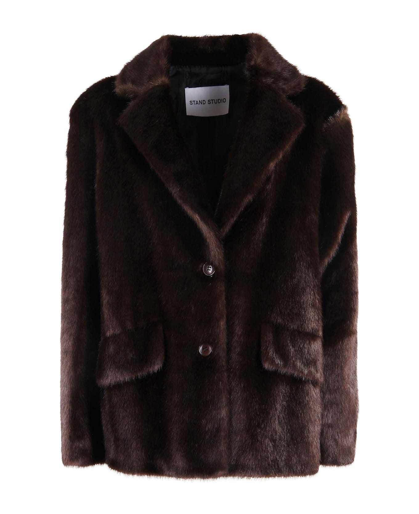 Evyn Eco Fur -Stand Studio -Color brown -Long sleeve -Classic collar -Side pockets -Center button and zipper closure