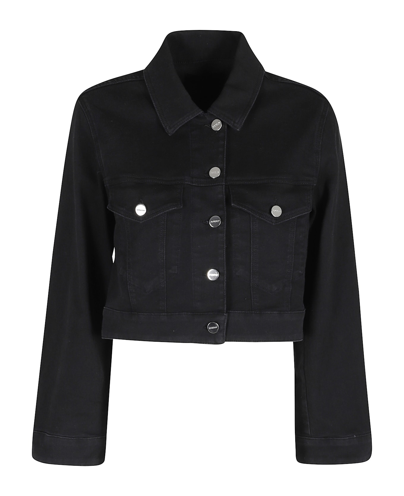Category: Jacket Article: Cropped Jacket Brand: Dondup Color: Black Collar: Shirt collar Pockets: Two front pockets with flap and button, Closure: With buttons on the front SIZE AND FIT Fit: Regular Sleeve: Long with cuff