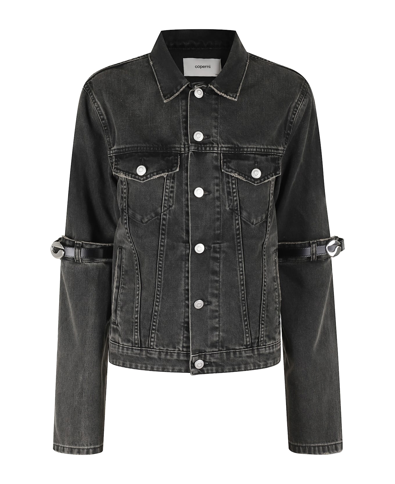 Hybrid Jacket - Blanket - Black color - Denim fabric - Pointed collar - Sleeve with leather strap and metal buckle - Front flap pockets - Flush side pockets - Front button closure - Regular fit