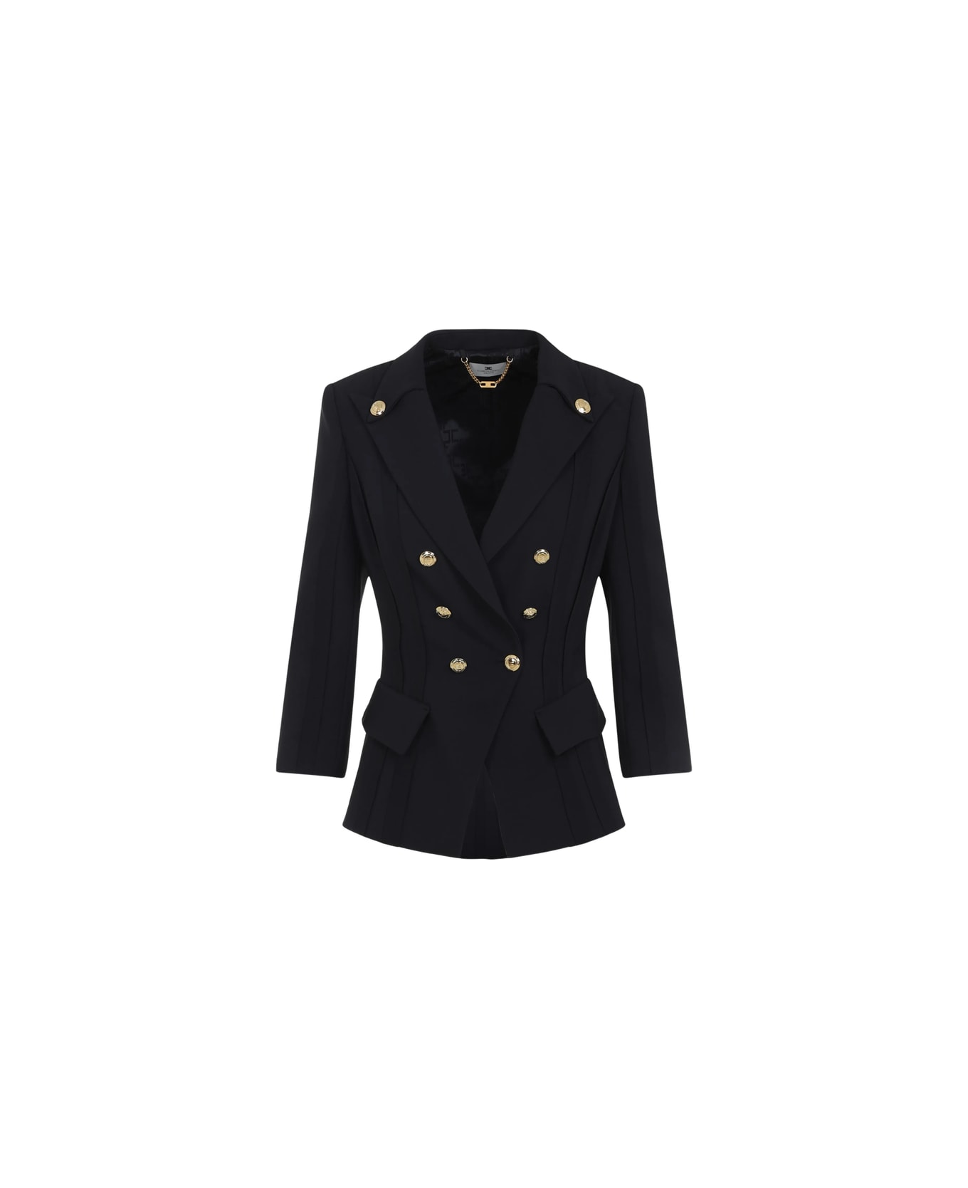 black gold-tone hardware chain detail peak lapels double-breasted front flap pockets