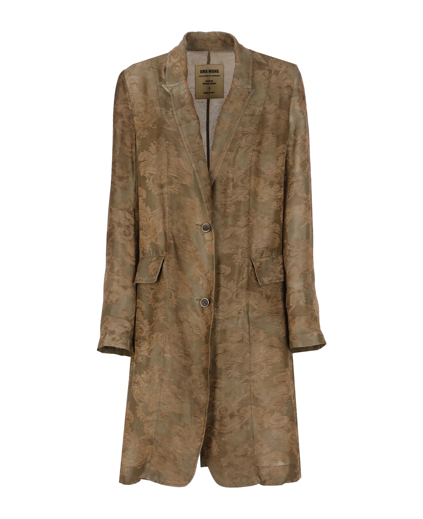 - Brown Uma Wang viscose blend coat for woman - Classic lapel collar - Long sleeves with buttons - Two front flap pockets - Front buttons fastening - All-over tone on tone embroidered floreal pattern