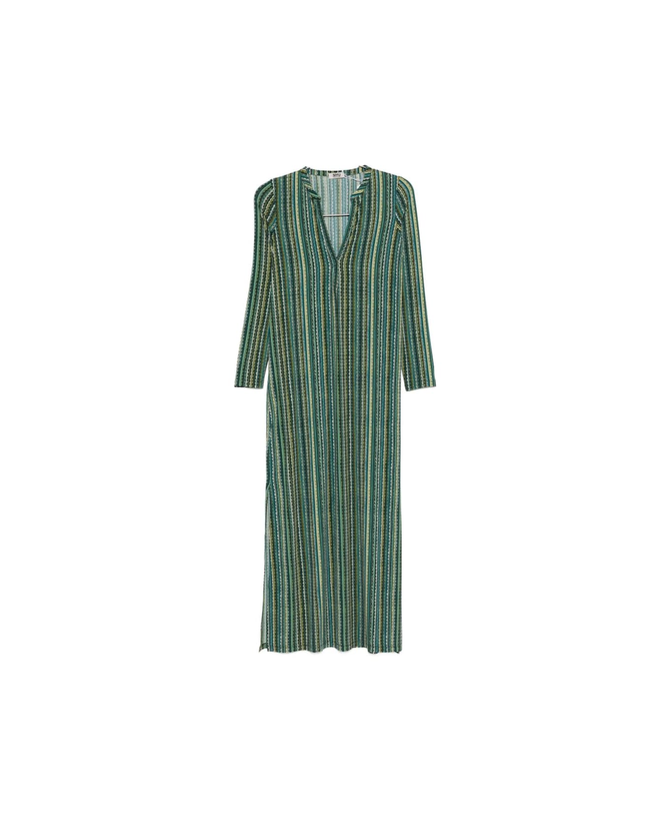 green/multicolour striped V-neck long sleeves split hem