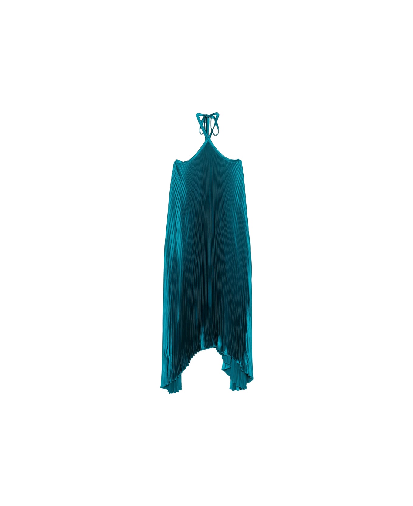teal pleated halterneck asymmetrical hem sleeveless