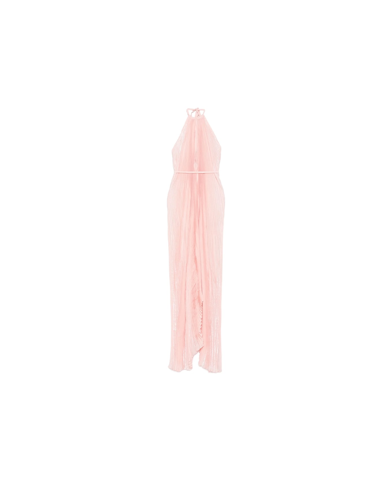 light pink pleated fabric halterneck sleeveless asymmetrical hem