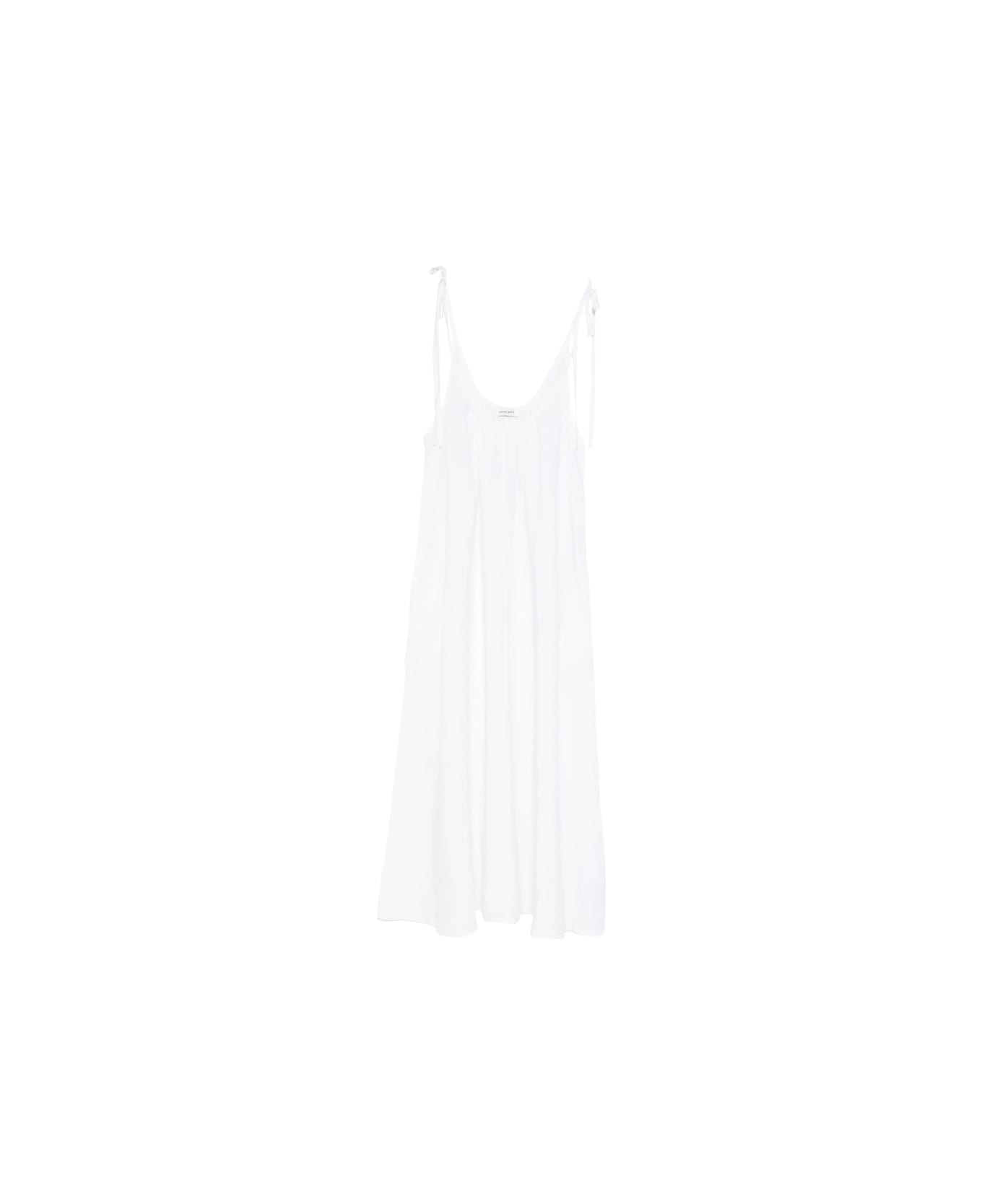 white tie straps gathered detail sleeveless midi length side pockets