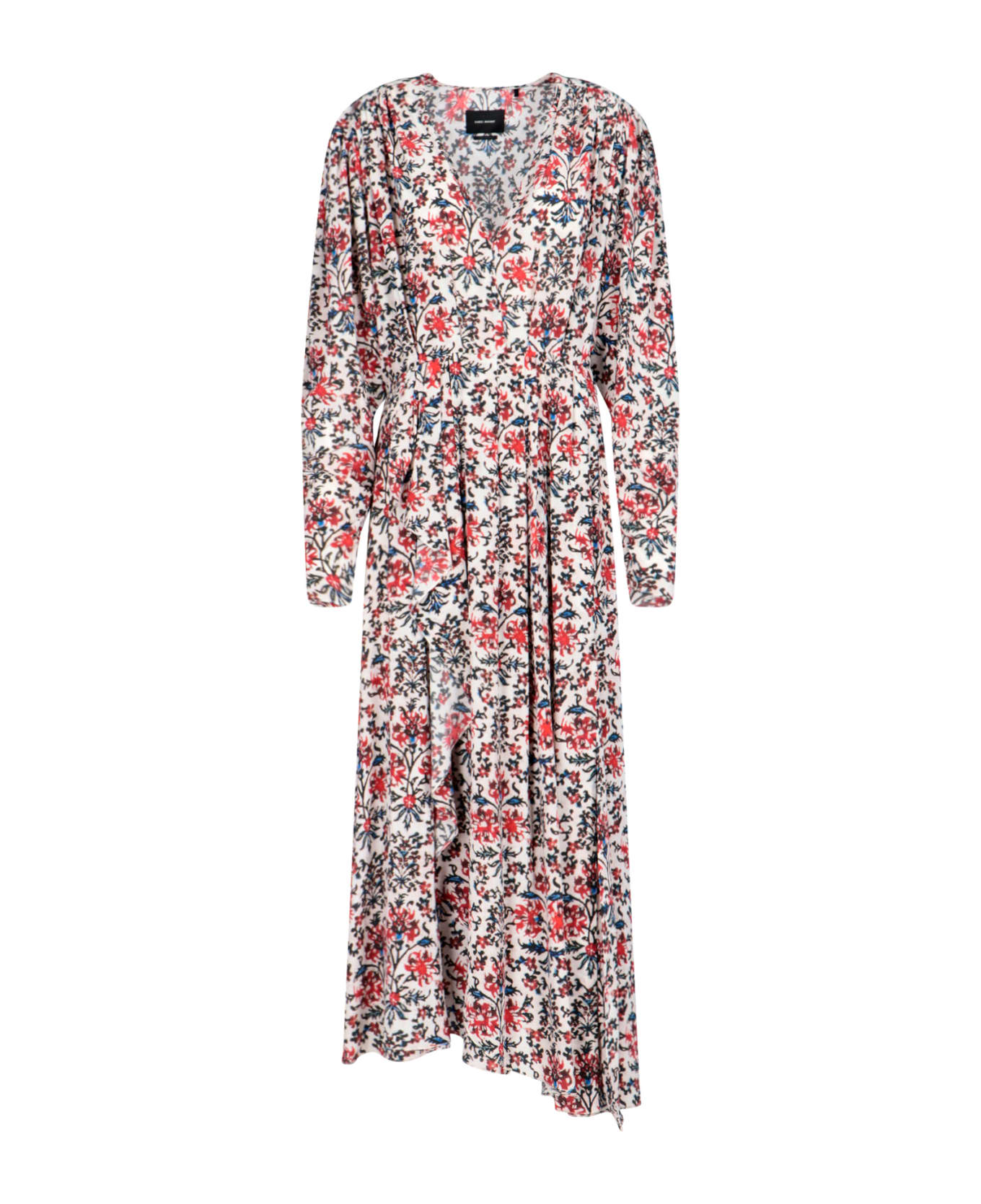 Isabel Marant Blaine Floral Dress, Deep V-Neckline, Wide Sleeve, Buttoned Cuffs, Long Design - 100% Silk - Regular Fit