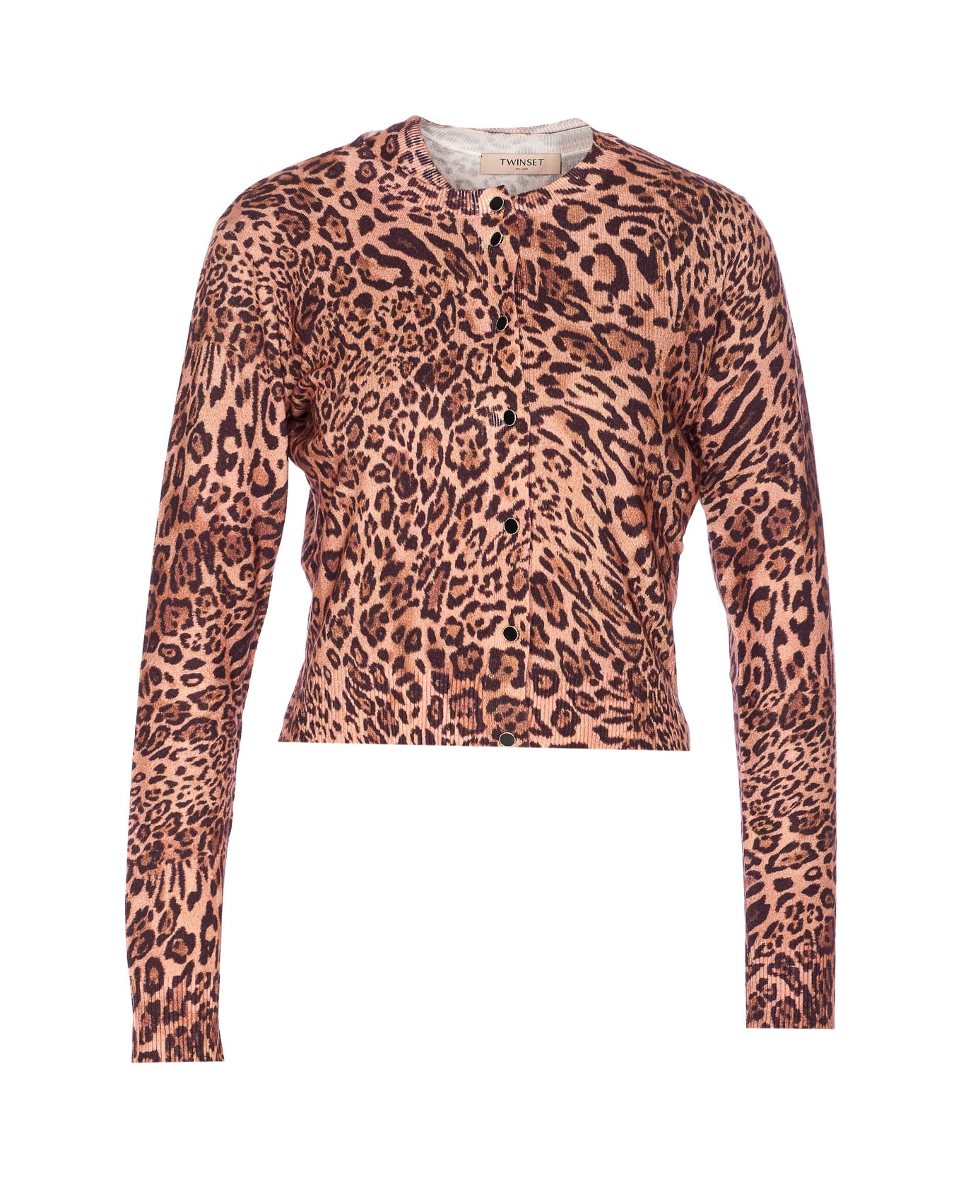 Twinset leo twinset, cardigan and t-shirt, knitted, back logo, animalier leo pattern Composition: 55% Viscose, 45% Polyamide Composition: Co1 Tes:, 55% Vi, 45% Pa - Co2 Tes:, 55% Vi, 45% P