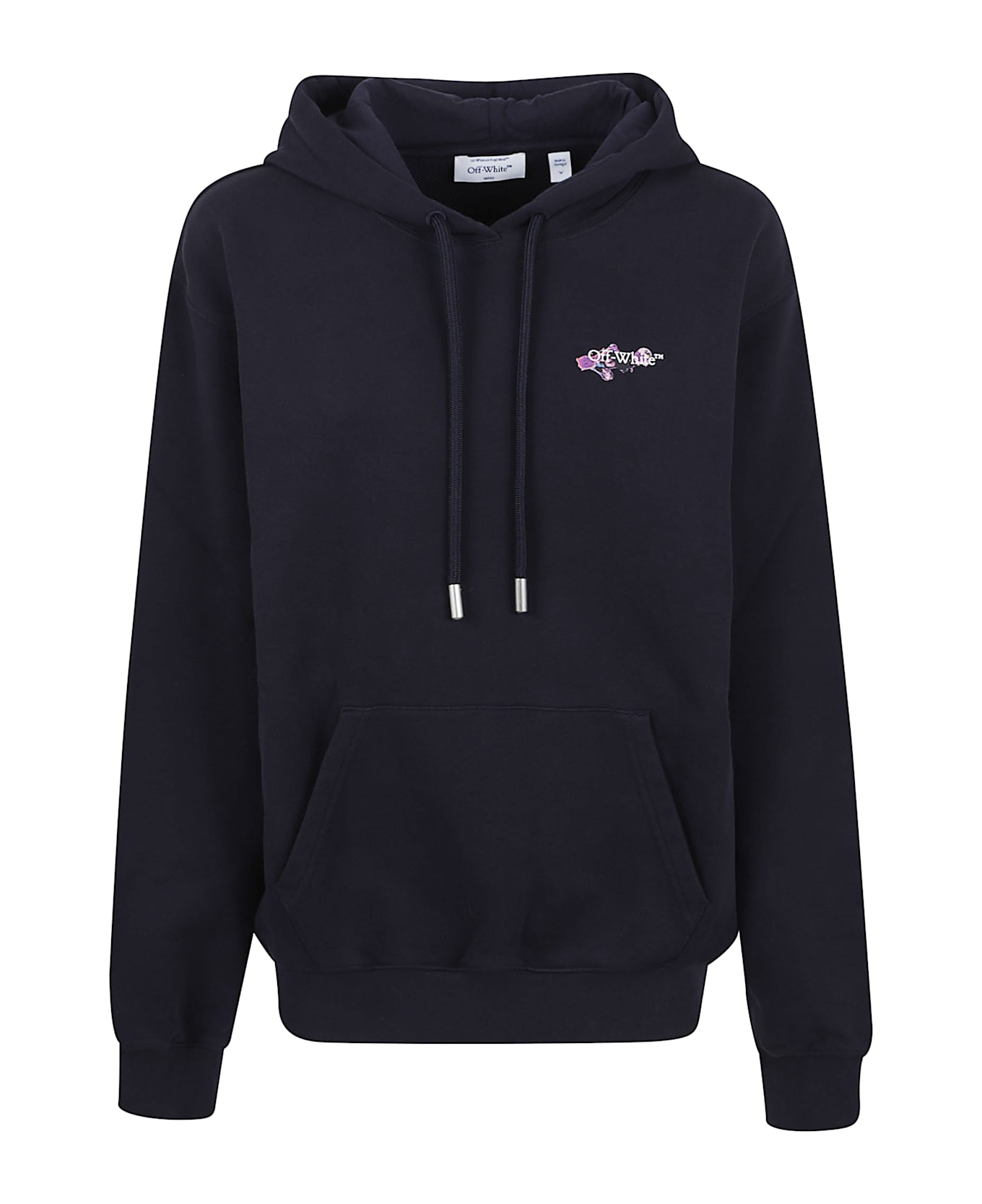 Cotton sweatshirt by OFF WHITE. Adjustable drawstring hood; long sleeves; ribbed elastic trim; front kangaroo pocket; relaxed fit. Featuring a watercolor Off-White logo on the chest and an arrow motif on the back, dripping into the night sky.