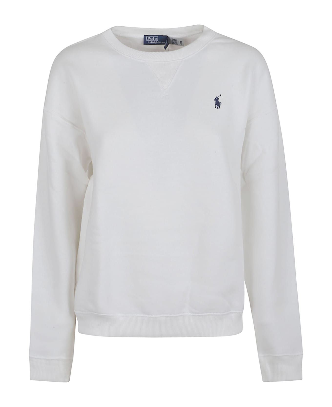 Soft cotton blend sweatshirt by POLO RALPH LAUREN. Crew neck; long sleeves; ribbed elastic collar, cuffs, and hem; oversized fit, hip-length. Features a contrasting embroidered pony on the left chest.