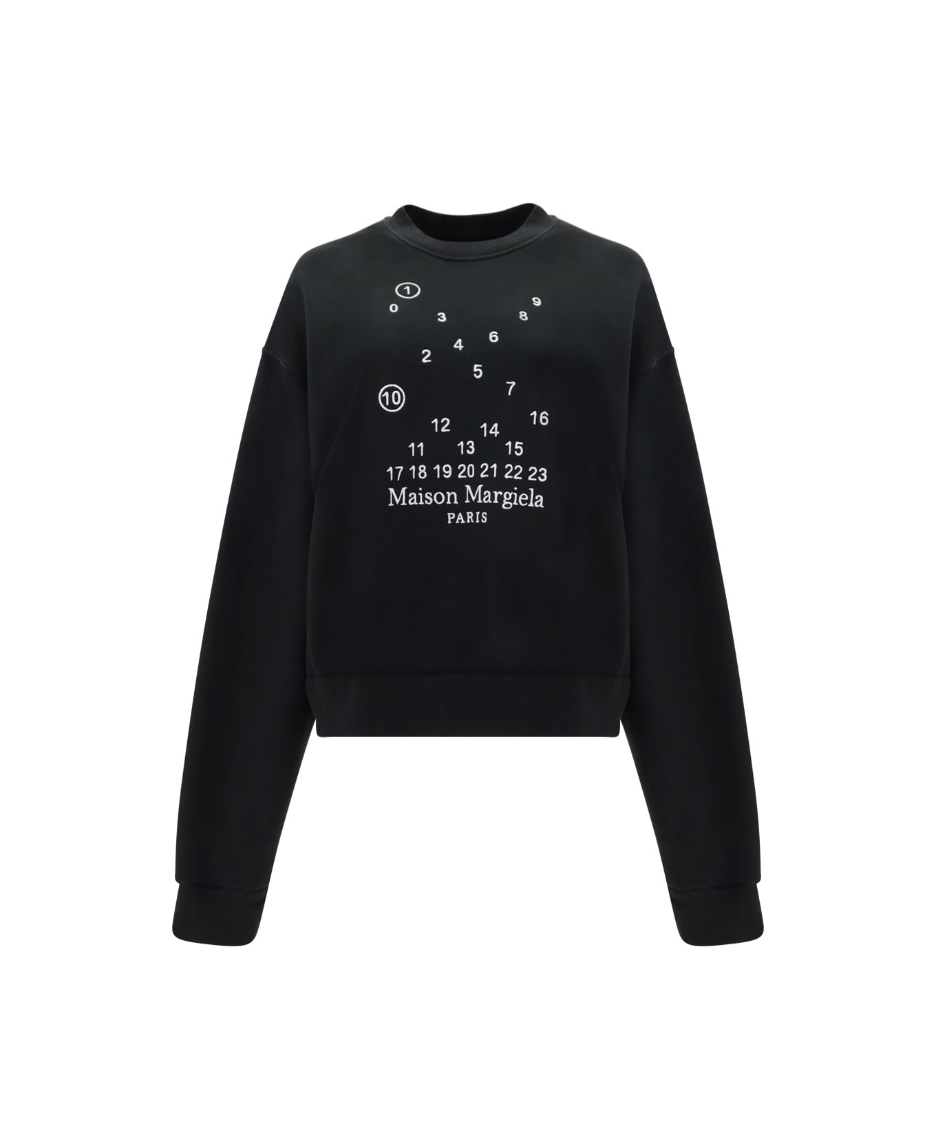 Cotton sweatshirt by maison margiela, ribbed crew neck, ribbed cuffs, ribbed hem, monochrome design, contrasting iconic brand logo and signature on front, regular fit.