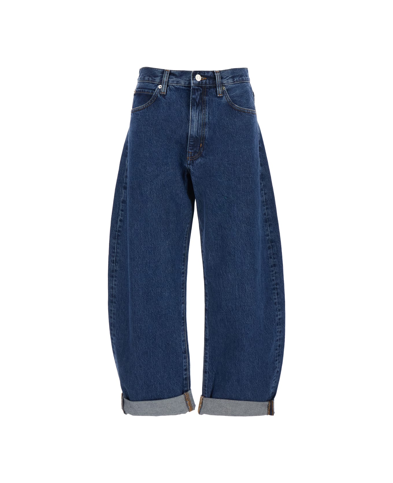 'the Bubble' Blue Jeans With Structured Leg And Turn-up Hem In Denim Woman