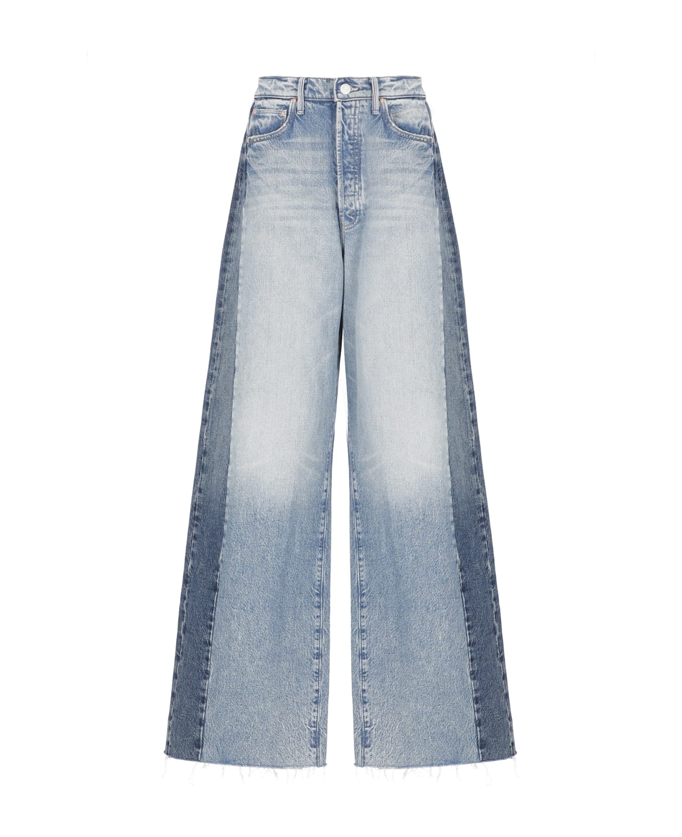 - Mother blue woman's cotton palazzo jeans - Belt loops - Front zip and button fastening - Four pockets - High waist - Ripped details at hem