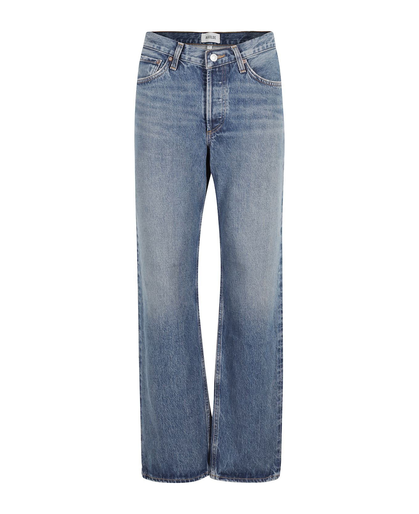 Kelly jeans -Agolde -Blue color -Waist loops -V waist -Center button closure -Five pockets