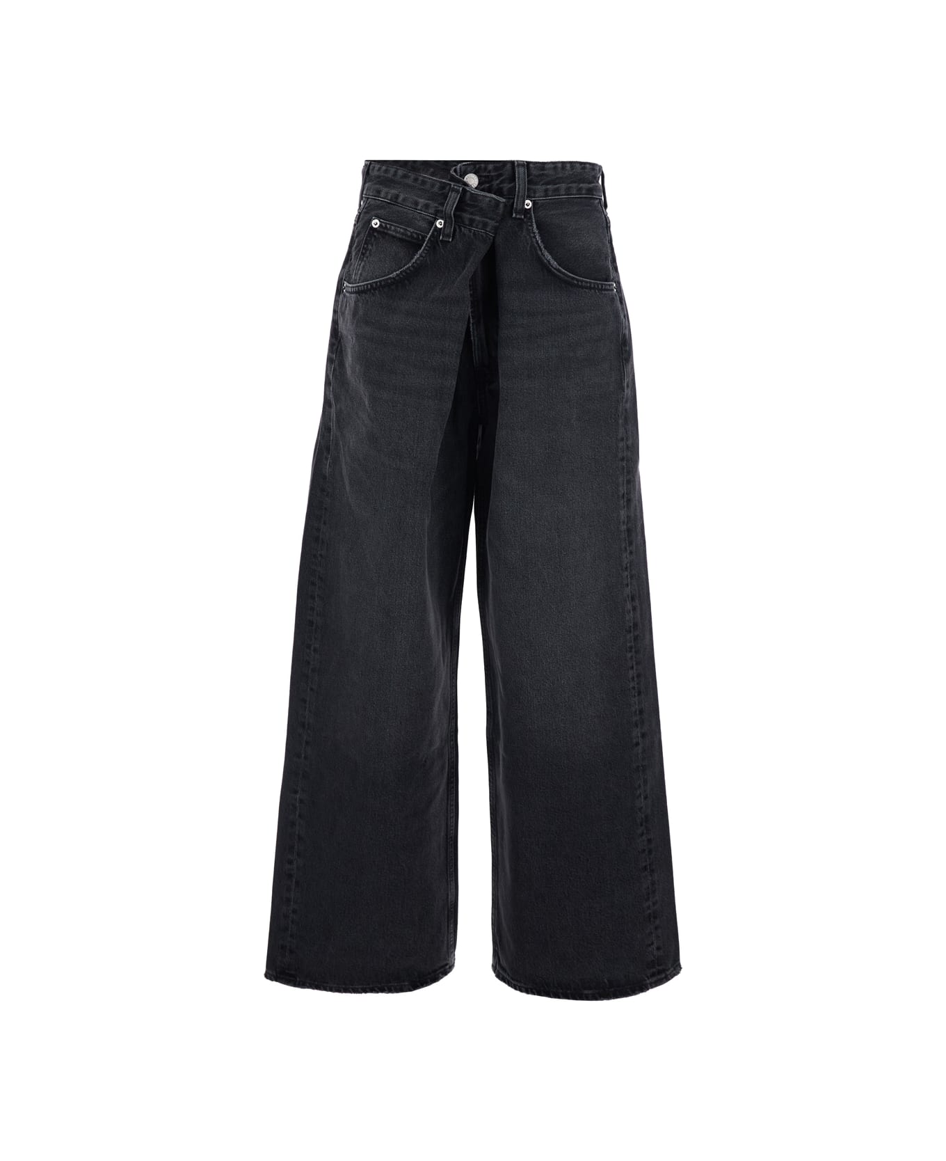 'vana' Black Low-crotch Jeans With Book Closure In Denim Woman