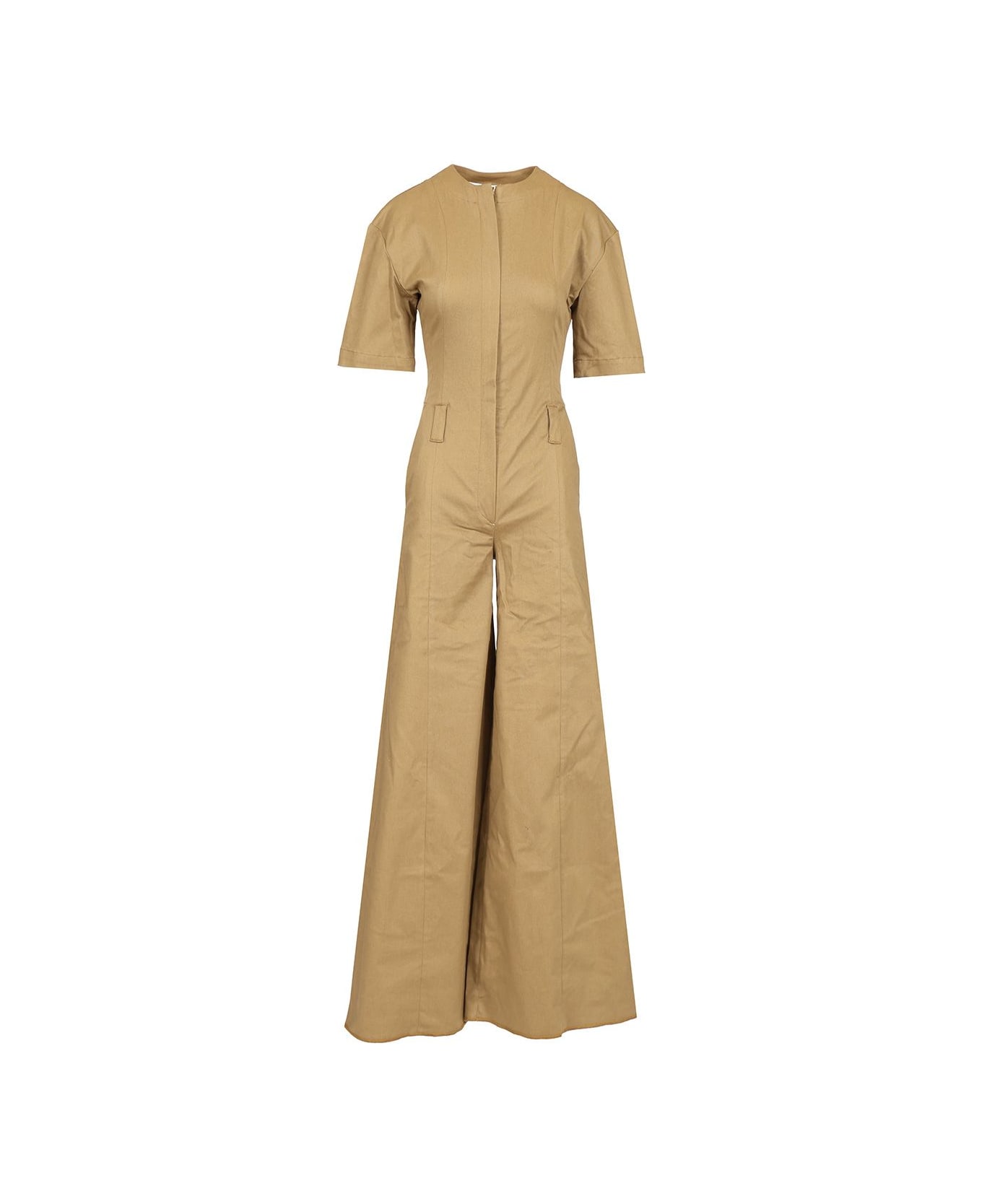 "Bianca" cotton jumpsuit by TheLatest, with crew neck and short sleeves, zip fastening, two side pockets and two back pockets