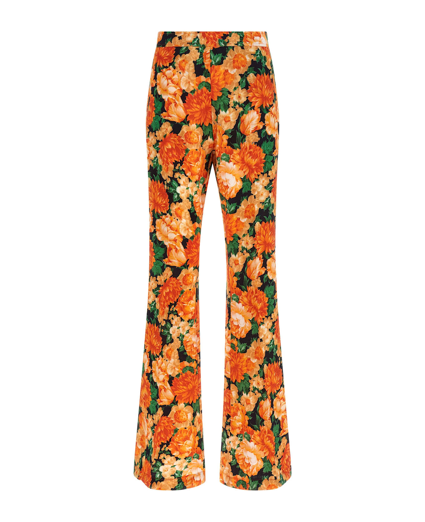 'Arese' pants in washed viscose canvas with all-over 'Botanic Garden' print, wide flared leg, stretched pleat, side zip closure, side pockets. Composition: 85% viscose, 15% polyamide
