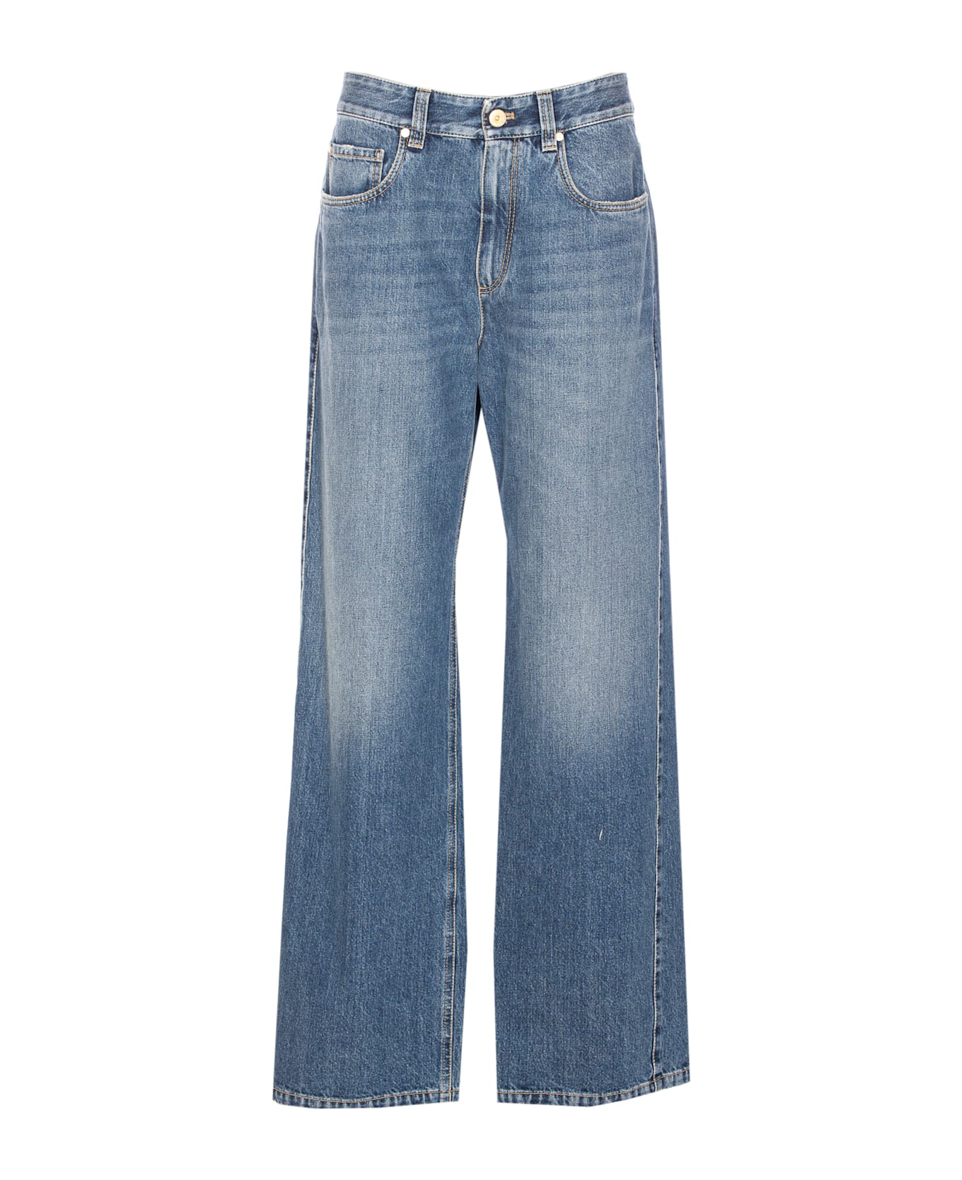 Brunello Cucinelli denim jeans, button and zip closure, 5 pockets, patch logo on the back, patch logo on the back Composition: 100% Cotton, 100% Leather