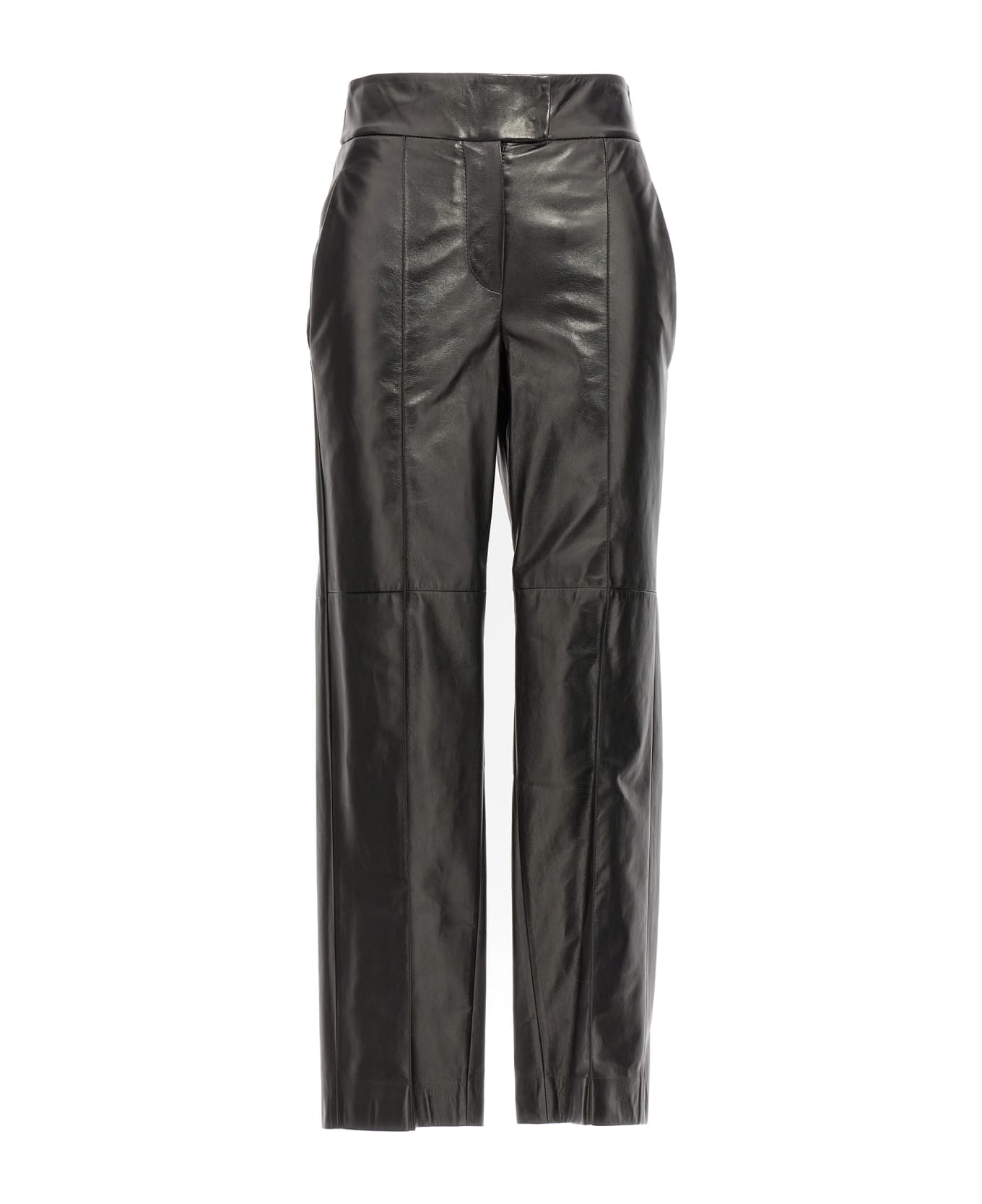 Leather pants with zip, hook-and-eye and button closure, pockets. Composition: 100% leather