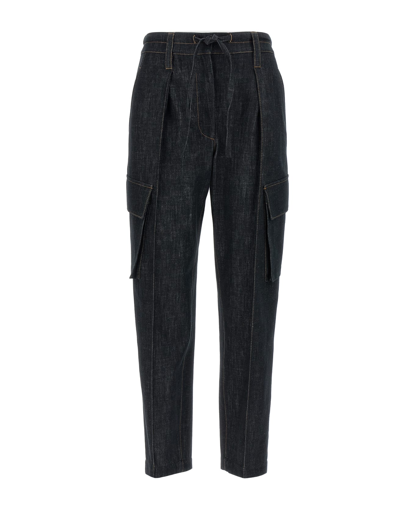Multi pocket cotton denim jeans with hook-and-eye and button zip closure, elastic and drawstring at the waist, central pleat and cropped leg, contrast stitching. Composition: 100% cotton