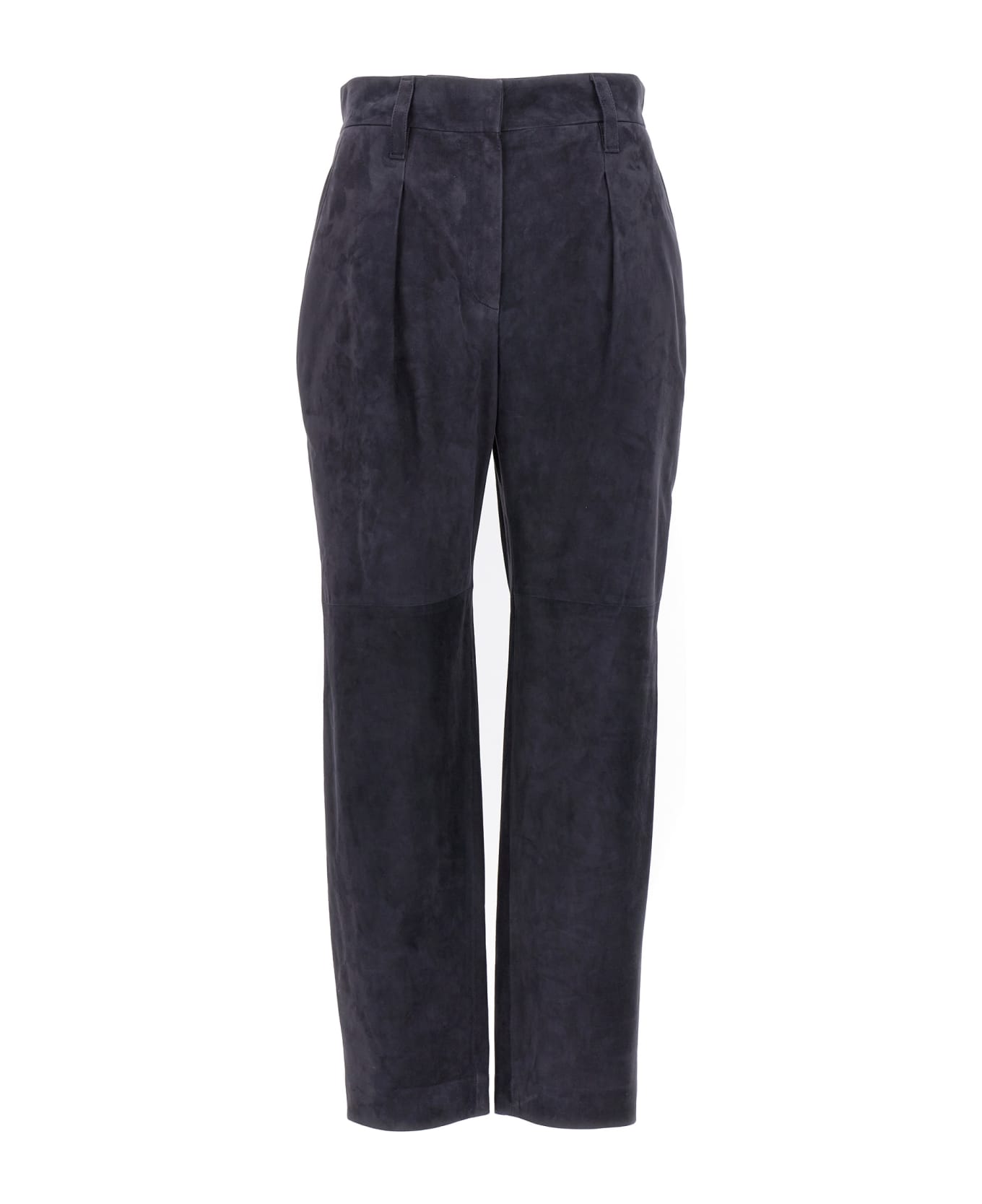 Suede pants featuring a zip, hook-and-eye and button closure, front pleats and pockets. Composition: 100% leather