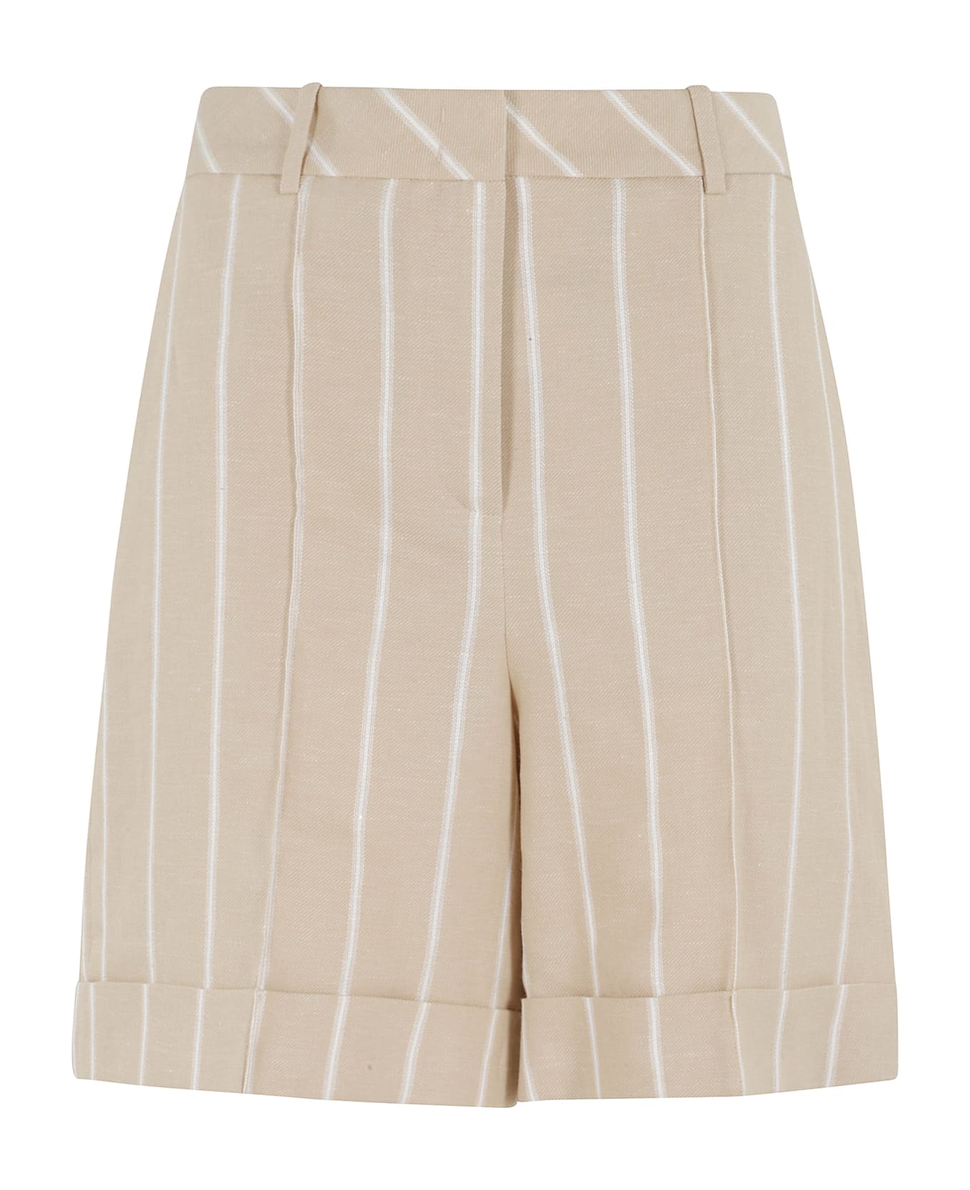 Category: Short Item: Striped Bermuda Shorts Brand: Eleventy Color: Beige Closure: Zip, button and hook Pockets: Flush sides and one back Details: Belt loops SIZE AND FIT Fit: Regular Fit: Straight