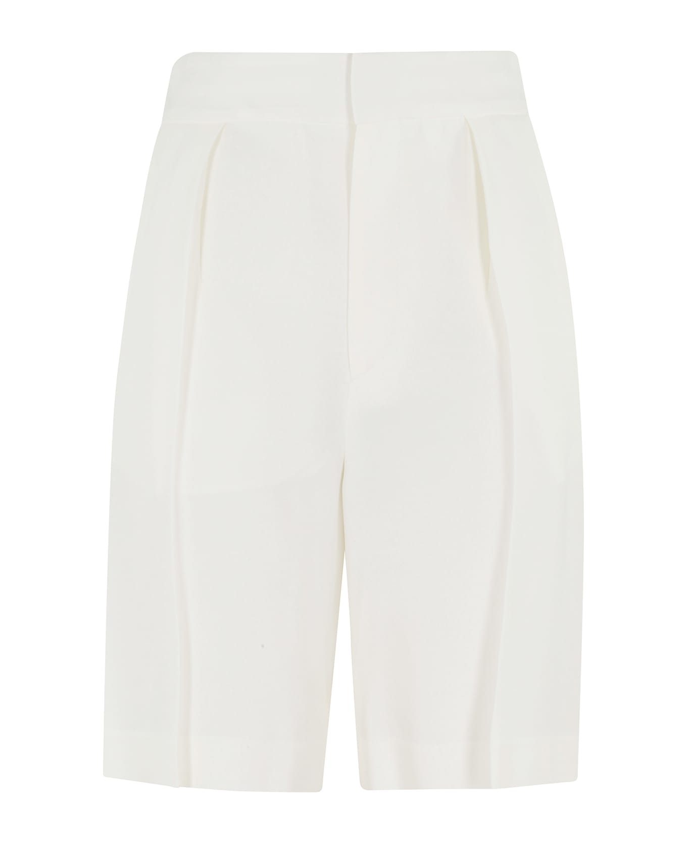 Category: Shorts Item: Tailored Bermuda Shorts Brand: Victoria Beckham Color: White Closure: Zipper, button and hook compartment Pockets: Flush sides, two back pockets Details: Front pleats, elastic waist back SIZE AND FIT Fit: Soft Fit Line: Straight