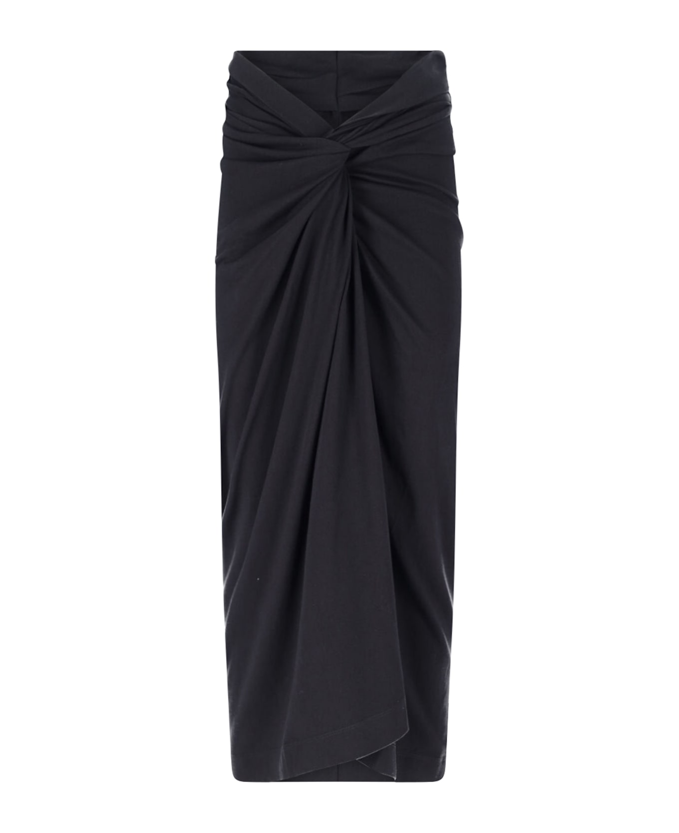 Dries Van Noten 'Knotted' midi skirt in black cotton with draped details, high waist, slip-on design, straight hem.