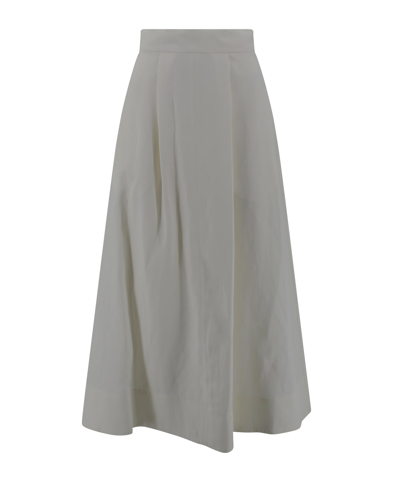 Midi skirt with concealed rear zip fastening, two side pockets, pleated details, flared cut
