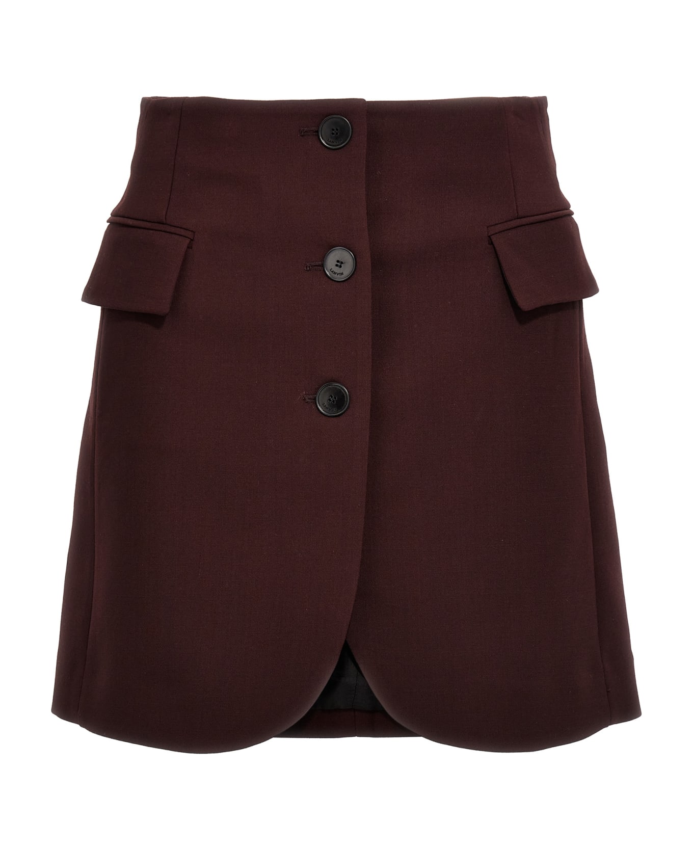 'Tailored' wool skirt with front button closure and pockets. Composition: 93% wv 4% ea 1% pa