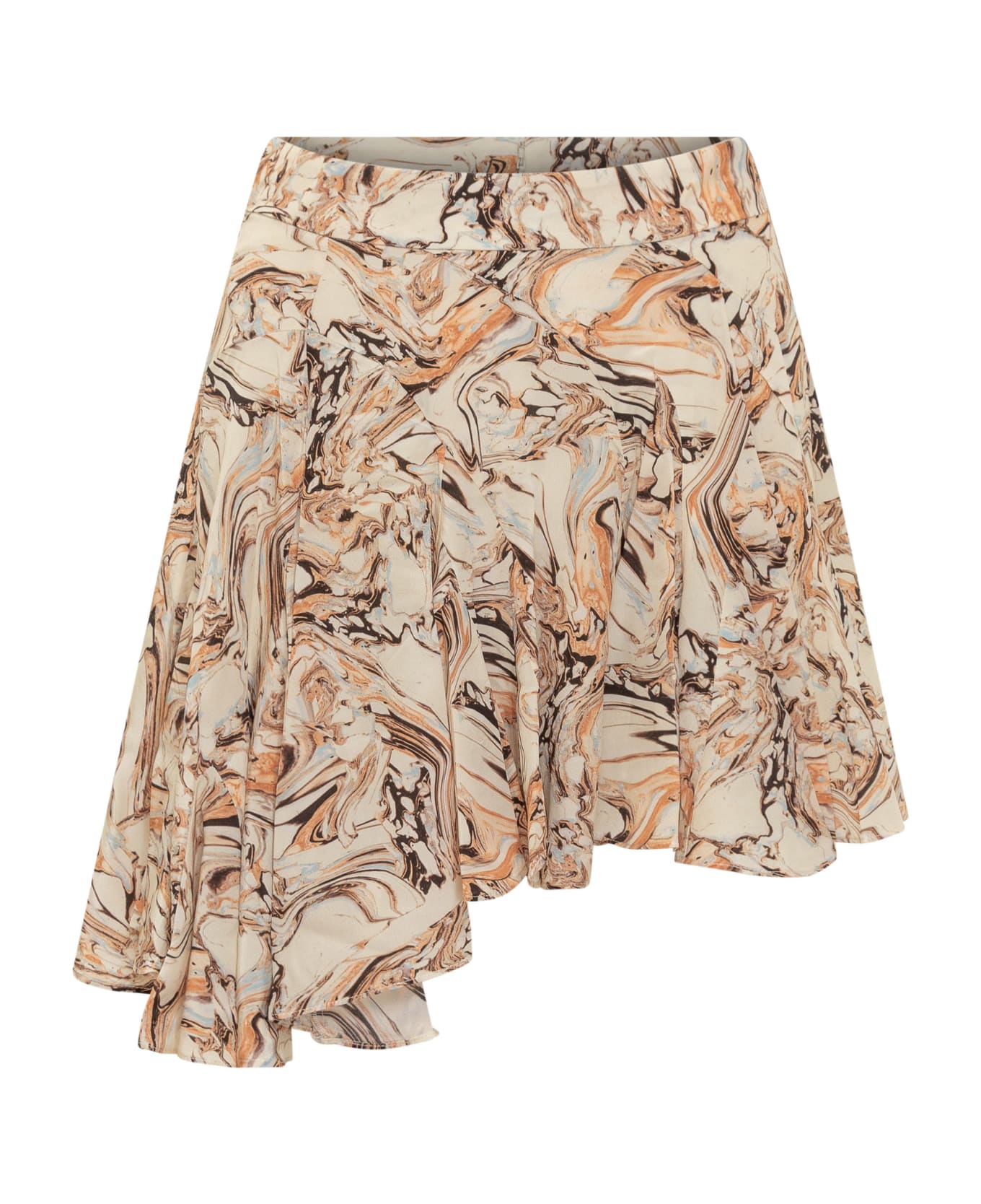Beige mini skirt. Zip closure on the back. All-over print.