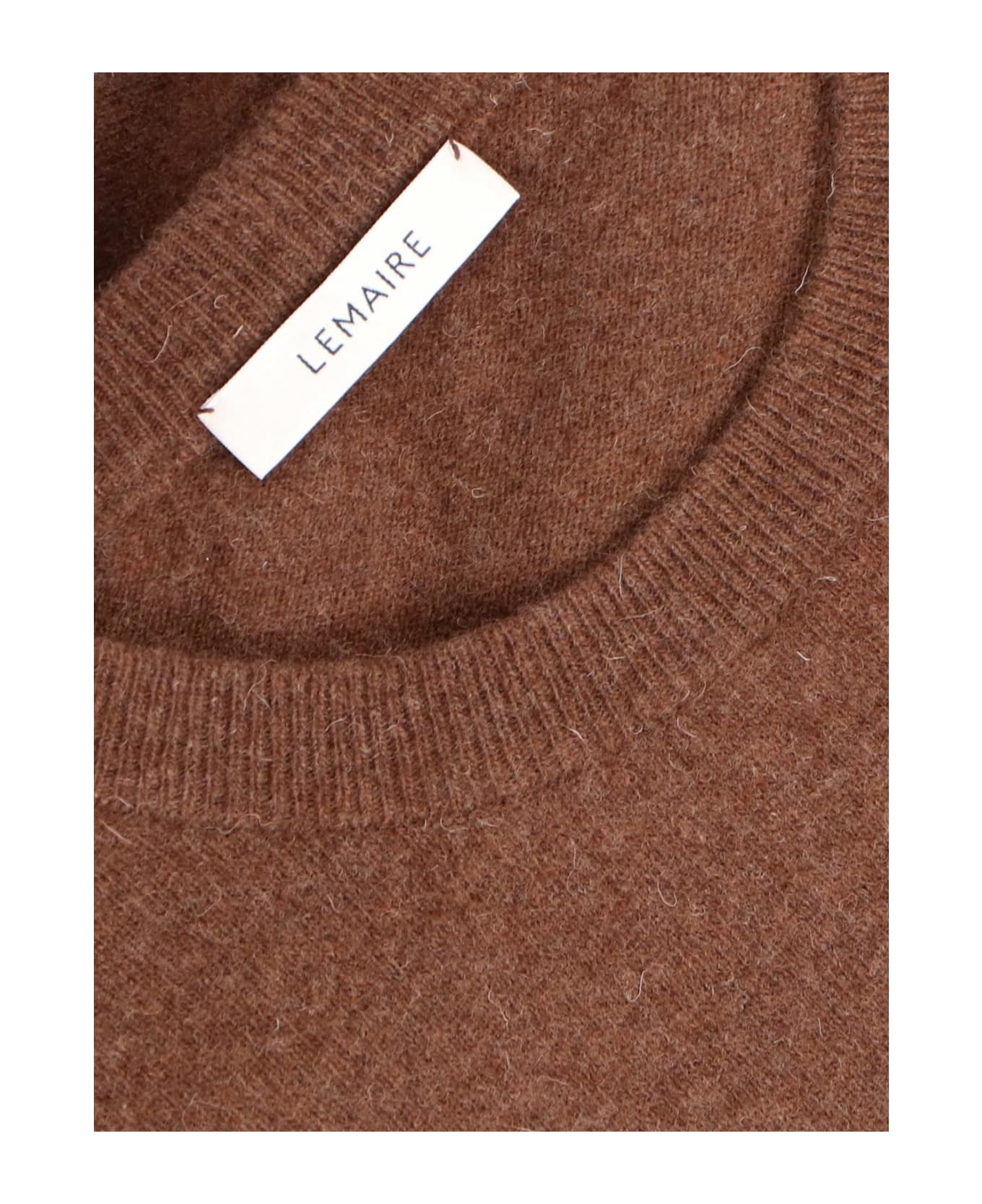 Lemaire basic sweater in brown wool blend with crew neck, ribbed trims, straight hem.