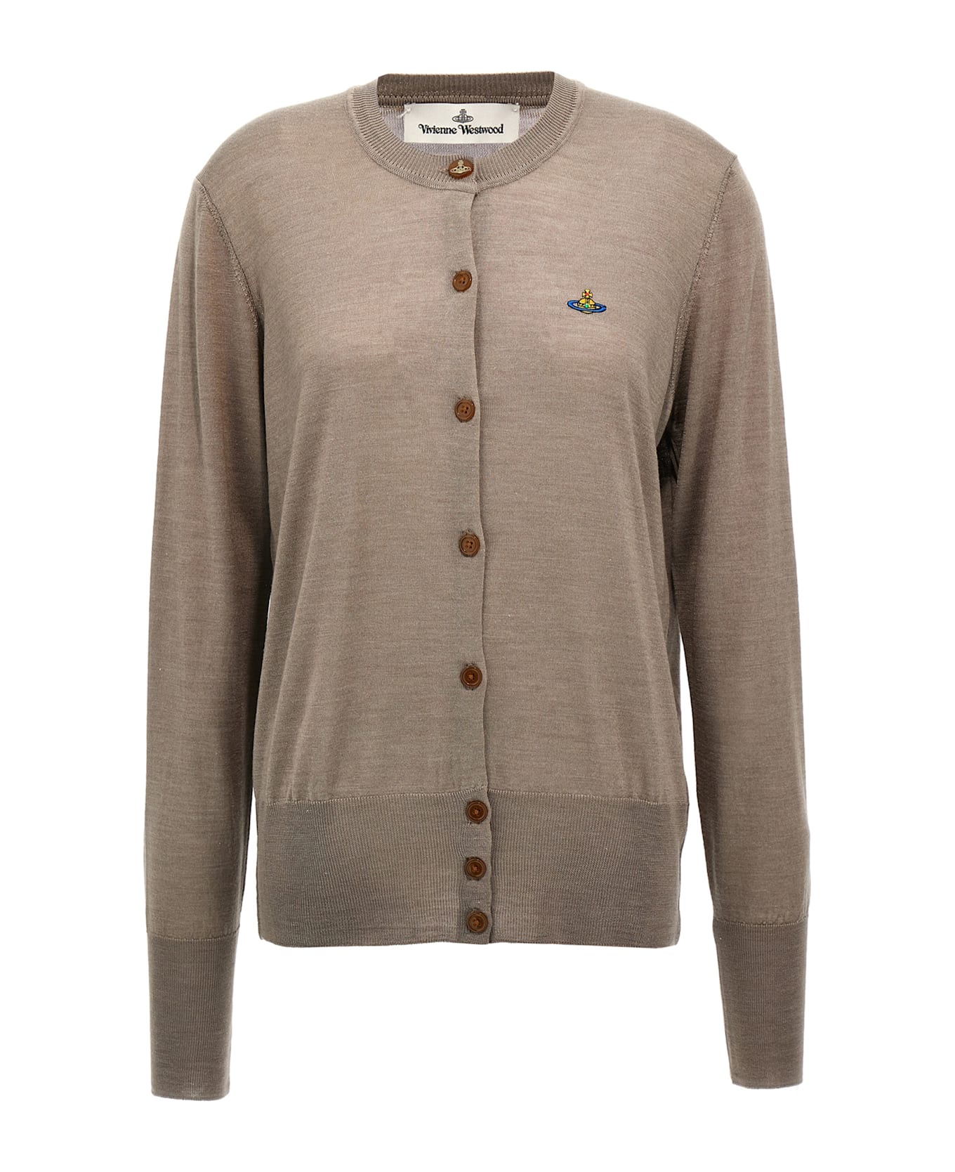 'Bea' wool and silk blend cardigan with front embroidery, crew neck, button closure, long cuffed sleeves. Composition: 70% wool, 30% silk