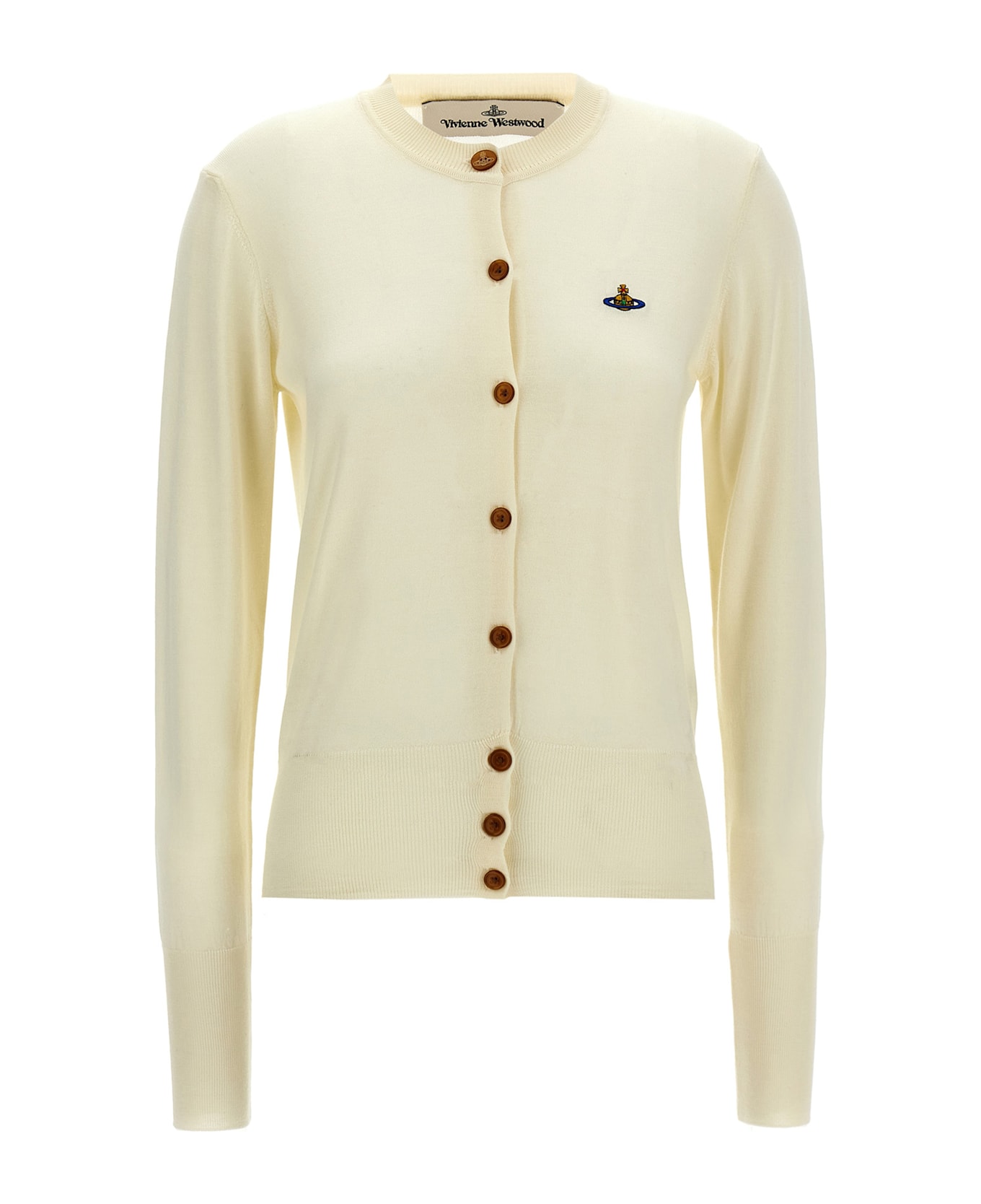 'Bea' wool and silk blend cardigan with front embroidery, crew neck, button closure, long cuffed sleeves. Composition: 70% wool, 30% silk