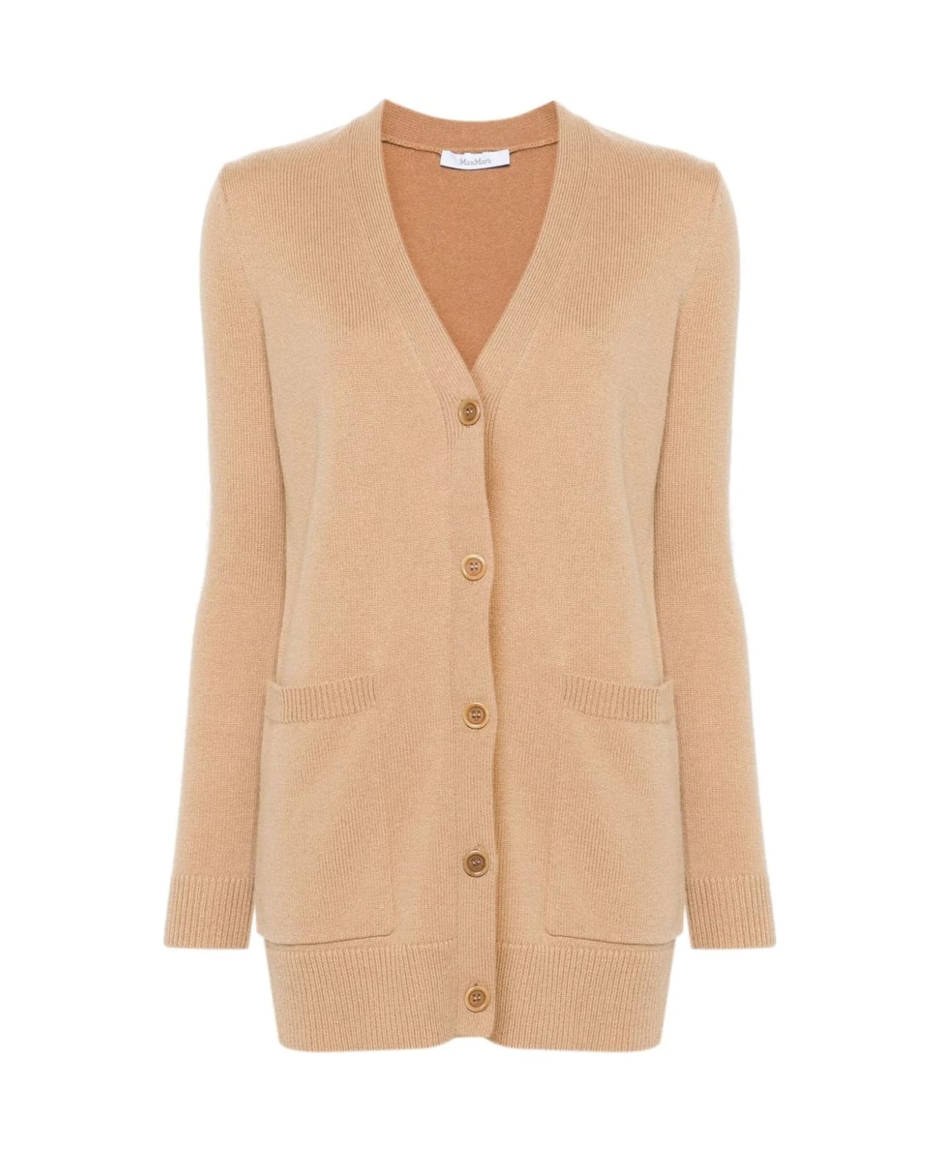 Composition: 70% Cashmere 30% Wool Front button closure Ribbed trims Dry clean Vneckline Straight hem Two side patch pockets Knitted design 1951 sequin motif on the back Made in Extra EU