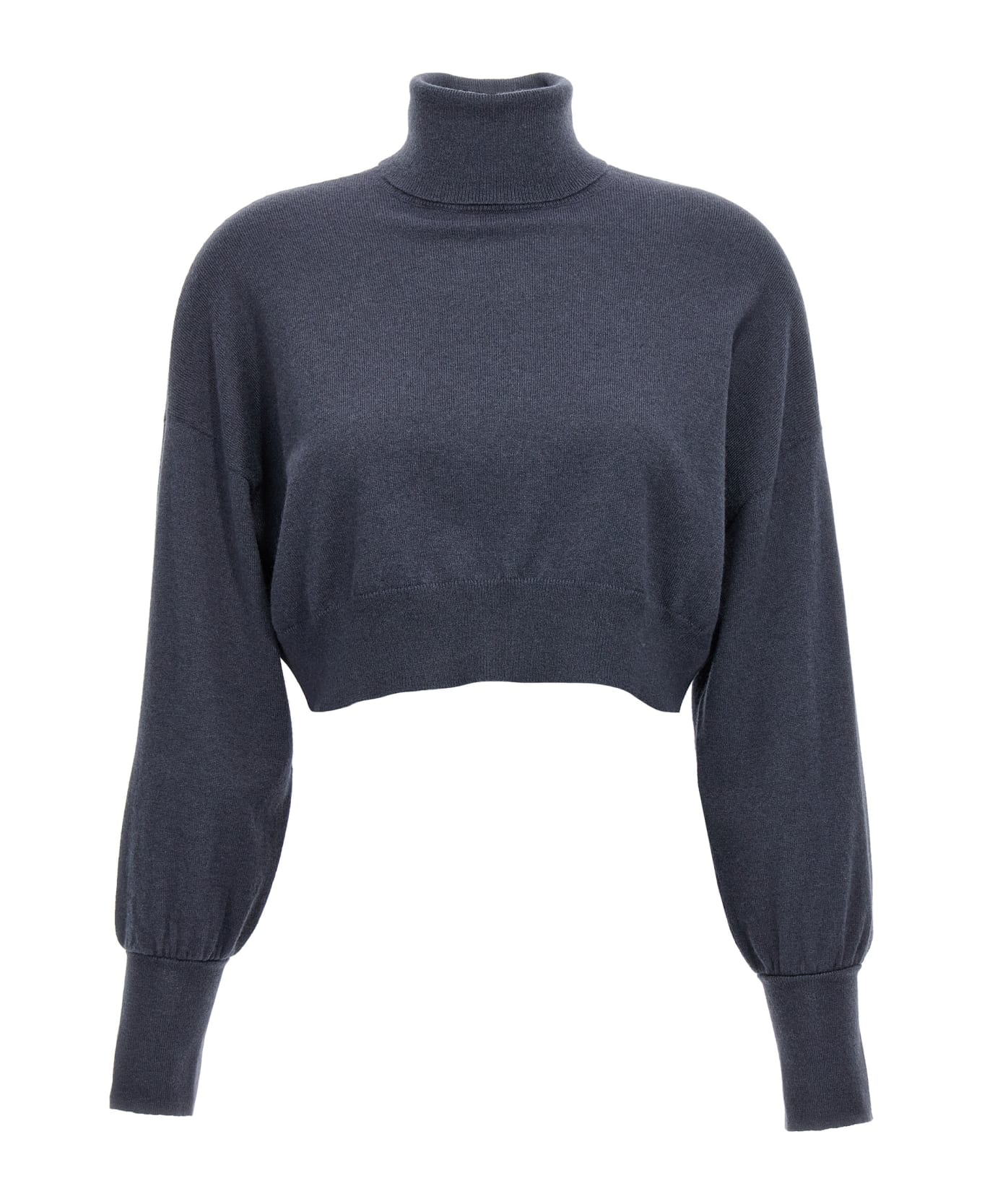 Cashmere turtleneck sweater with high neck, long sleeves with split and Monile detail on the cuffs. Composition: 100% cashmere