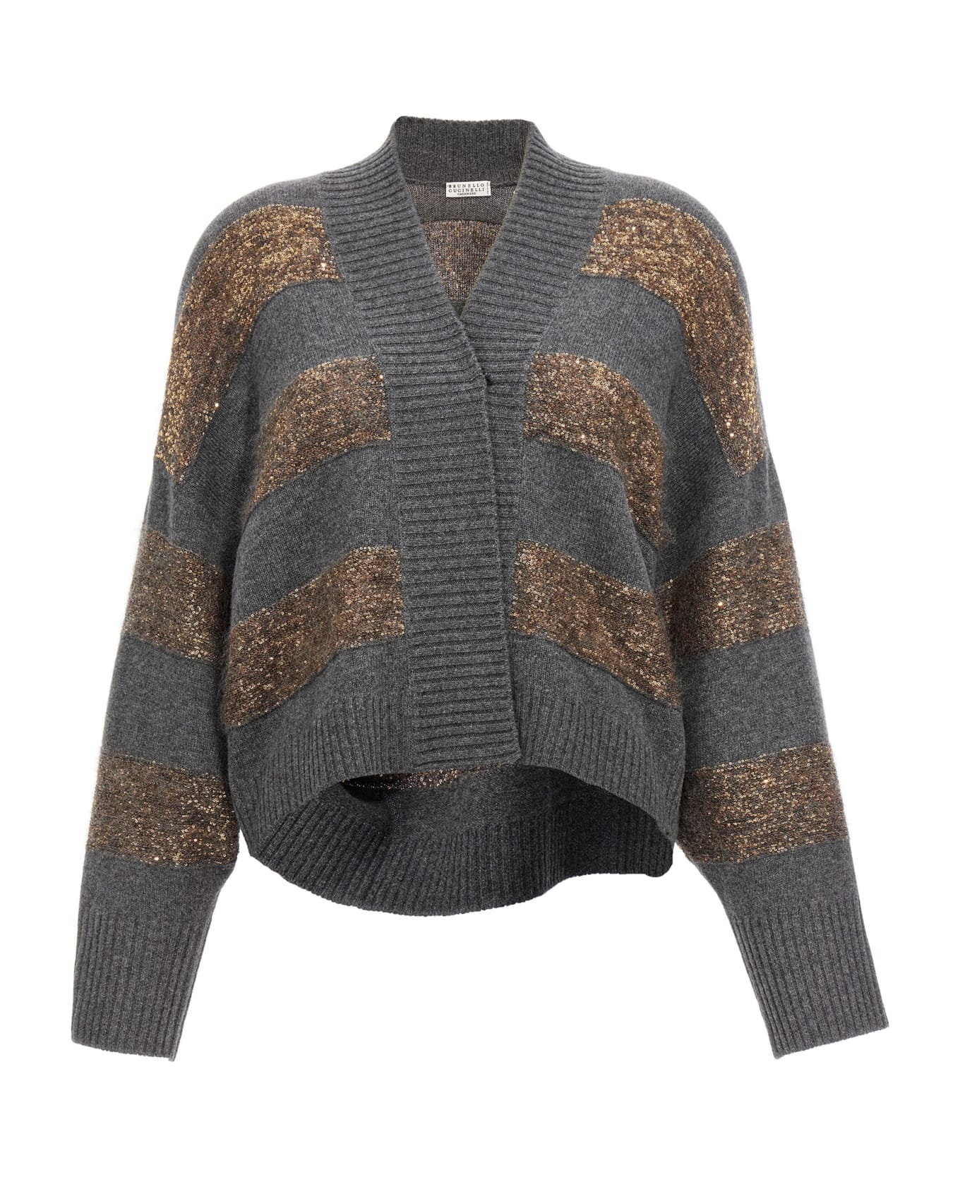 Cardigan in wool blend with contrasting sequins, button closure, and long sleeves. Composition: 60% wv, 30% ws, 10% se