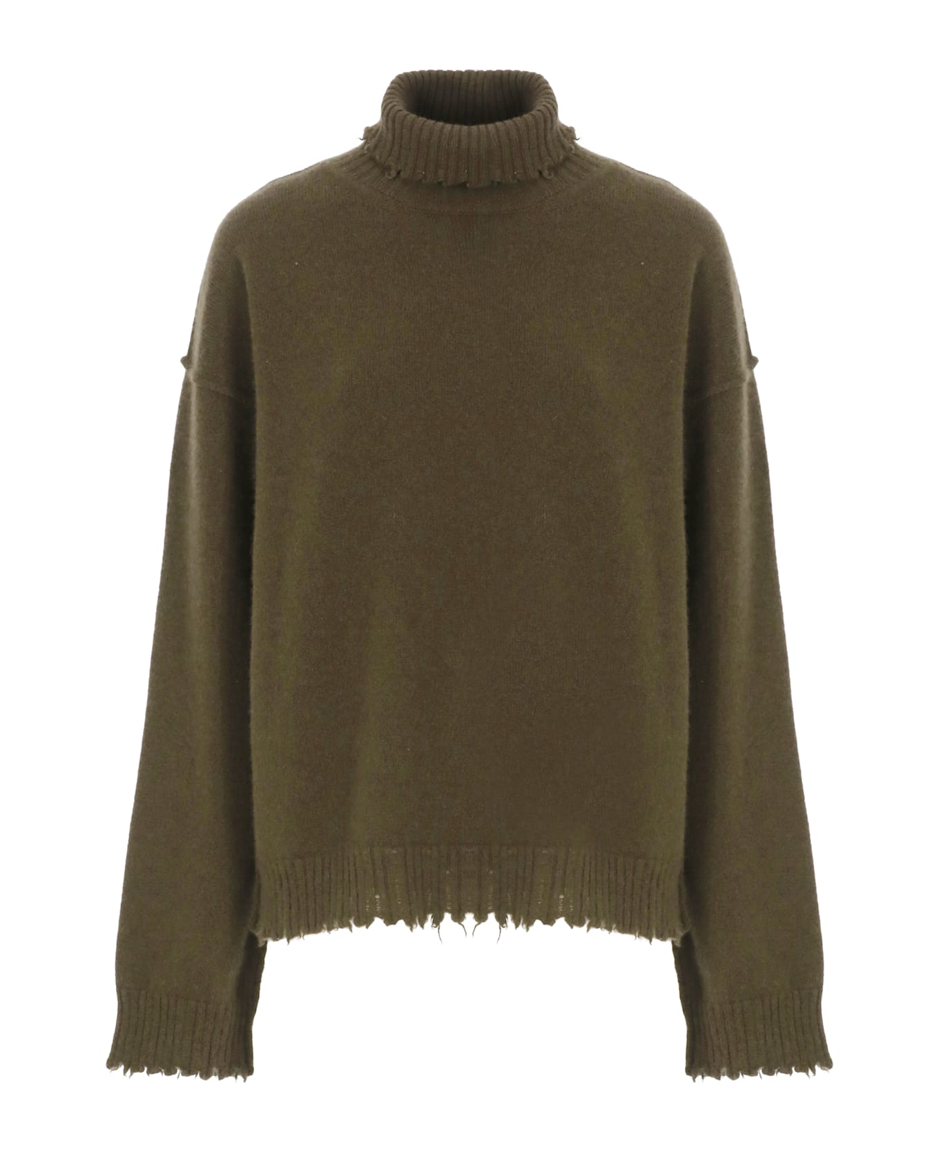 - Green Uma Wang cashmere sweater for woman - High neck - Long sleeves - Elastic ribbed trims with ribbed effect