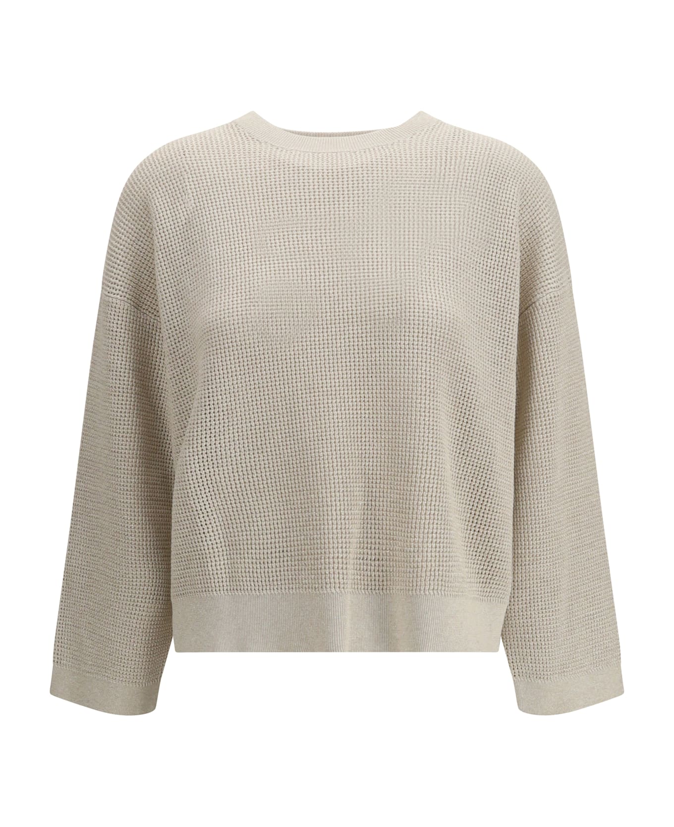 The crewneck sweater by brunello cucinelli elevates everyday knitwear through the brand s signature refinement. crafted from soft cotton, it features subtle shimmering accents woven directly into the yarn an intrinsic brightness rather than added embellishment creating a naturally luminous and sophisticated texture. long, clean-cut sleeves and ribbed trims shape a streamlined silhouette, offering understated elegance with timeless appeal.