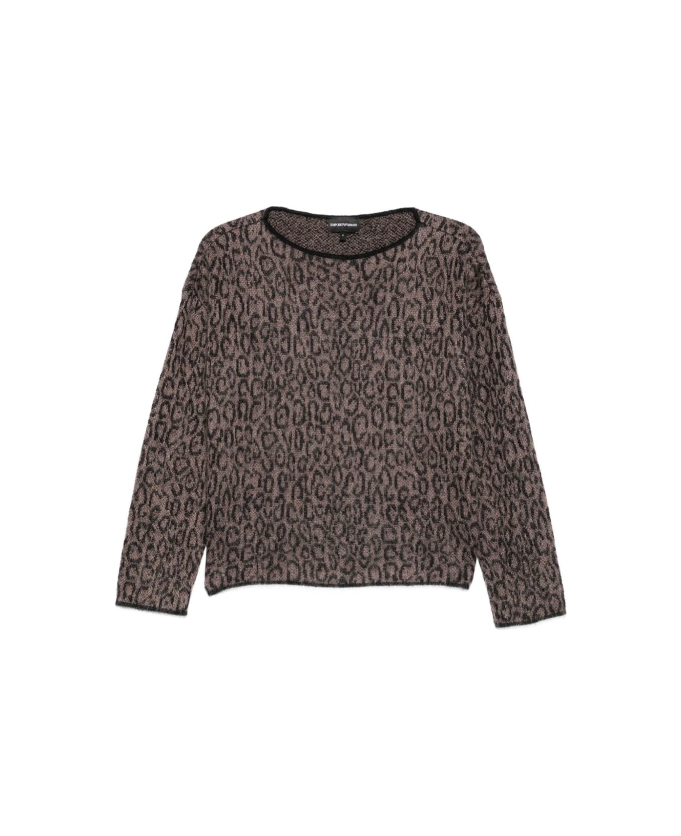 brown leopard print long sleeves round neck ribbed hem Composition: Mohair, 50% , Polyamide, 47% , Wool, 3%