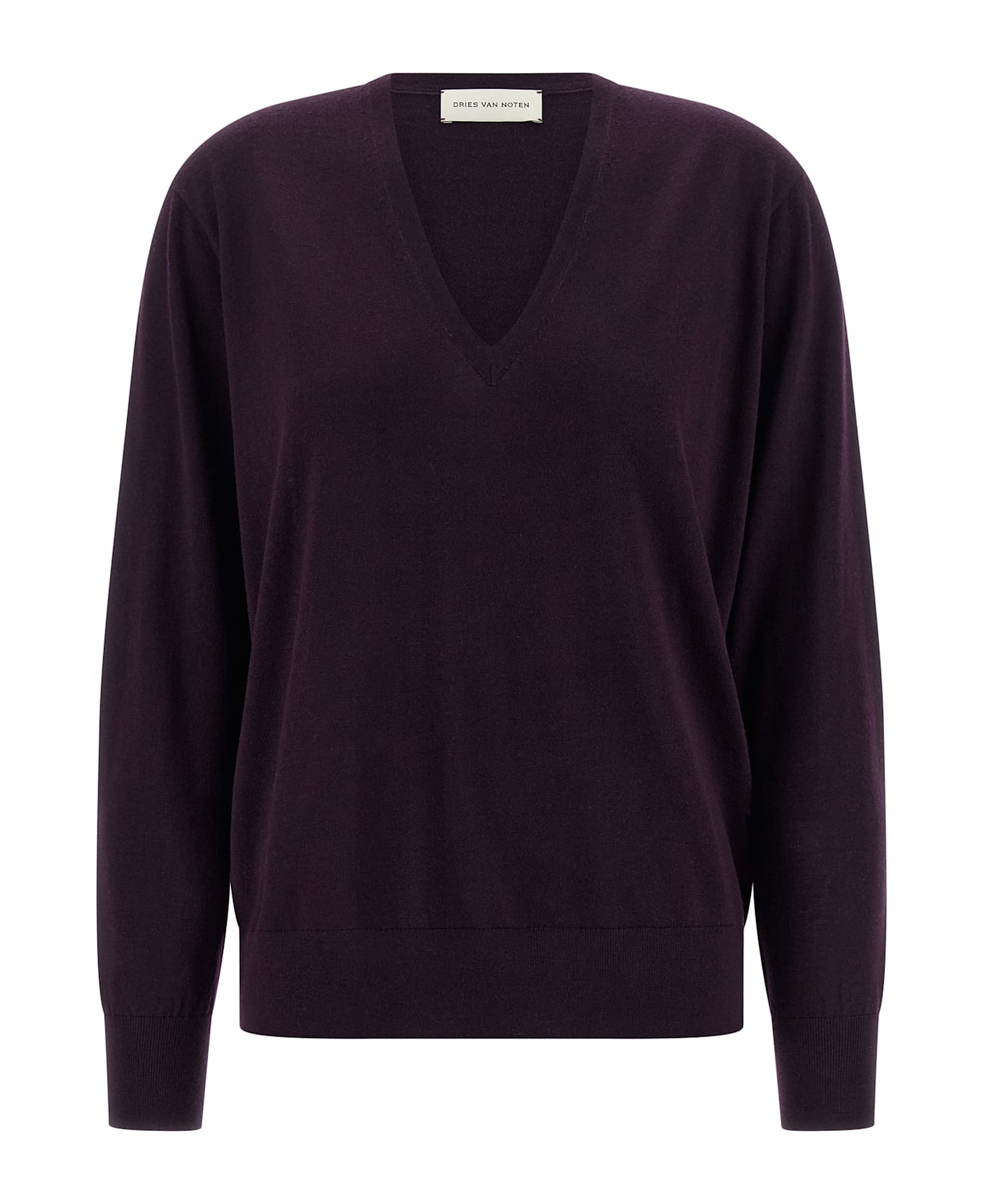 'Tuomas' sweater in lightweight merino wool with V-neck, long cuffed sleeves.