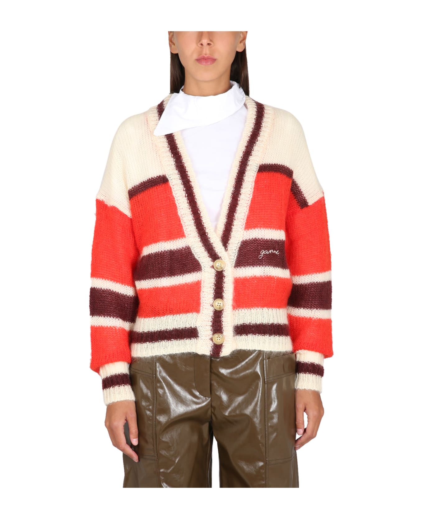 - Front Button Closure- V-neck- Front Logo Embroidery- Regular Fit- 55% Mohair, 33% Nylon, 12% Merino Wool- The Model Is 180 Cm Tall And Wears Size S