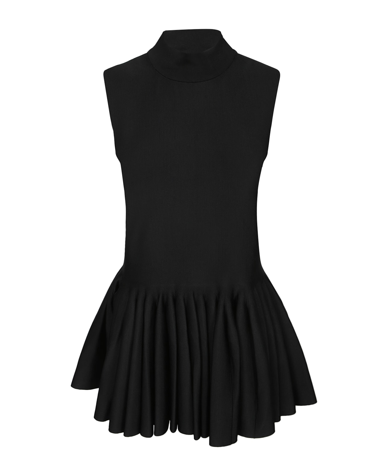 Elegant and sophisticated Alaïa top featuring a sleeveless design with a high collar, perfect for a slender silhouette. The flared hem adds a touch of femininity and movement.