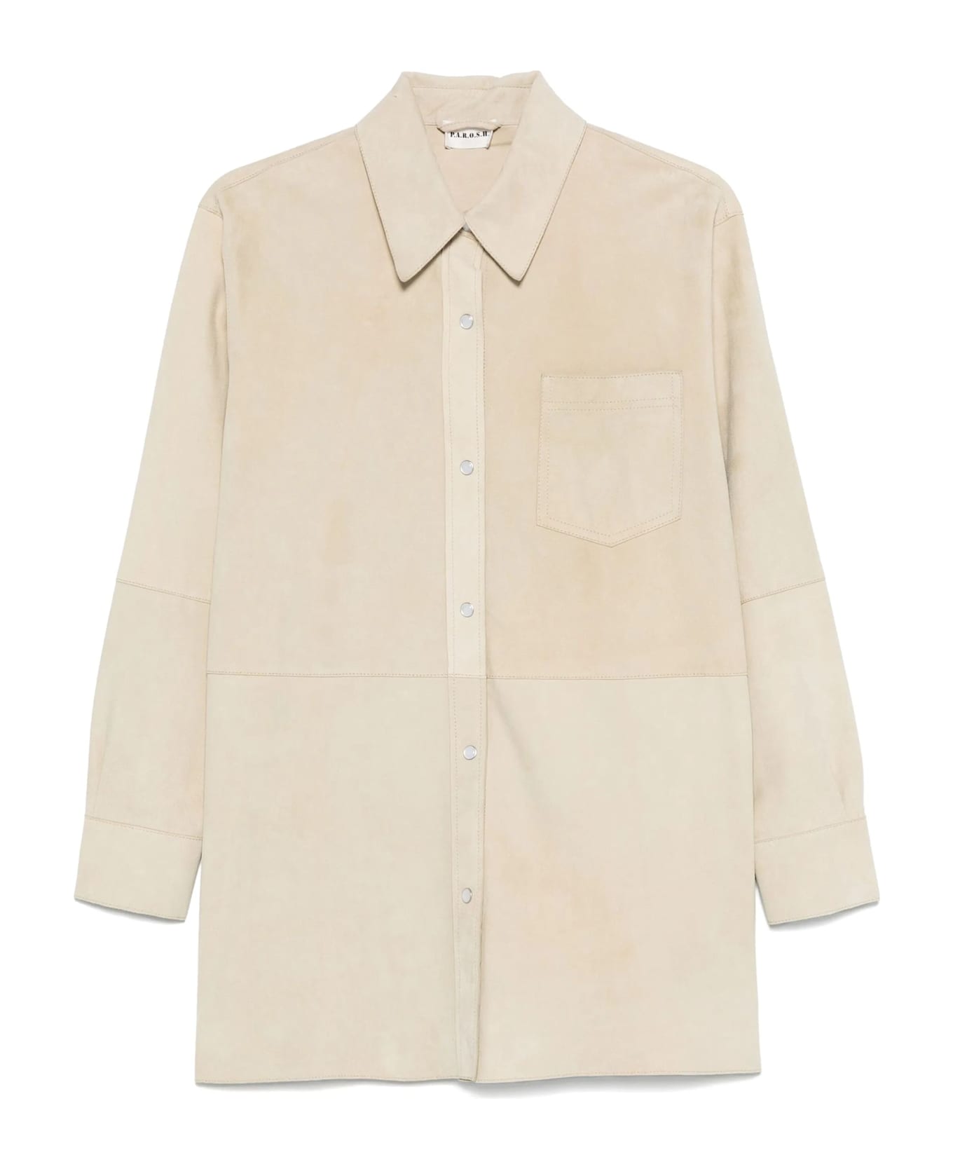 Beige Leather Shirt, Button Fastening, Long Sleeve Style