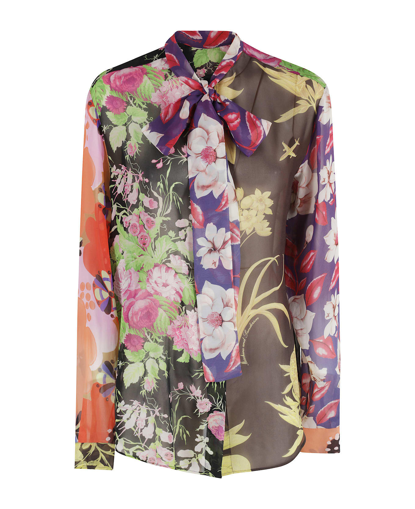 Shirt - Moschino - Multicolor - Floral pattern - Long sleeves - Front button closure - Built-in scarf - Sheer