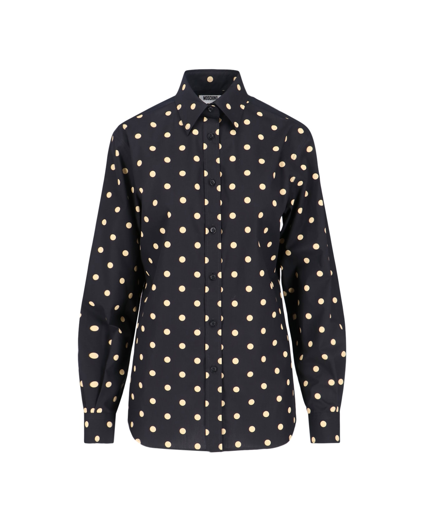 Moschino polka dot shirt in black cotton with beige details, classic collar, button closure, button cuffs, curved hem. Composition: 100% Cotton