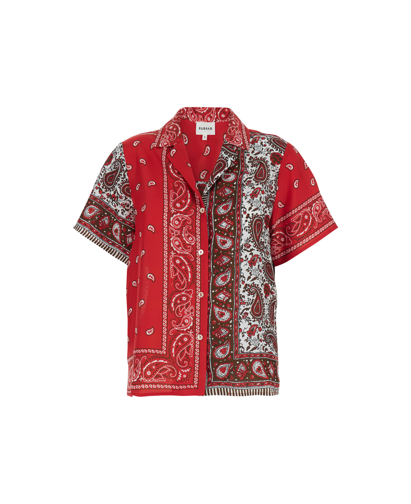Red Shirt With Cuban Neck And All-over Bandana Print In Silk Woman