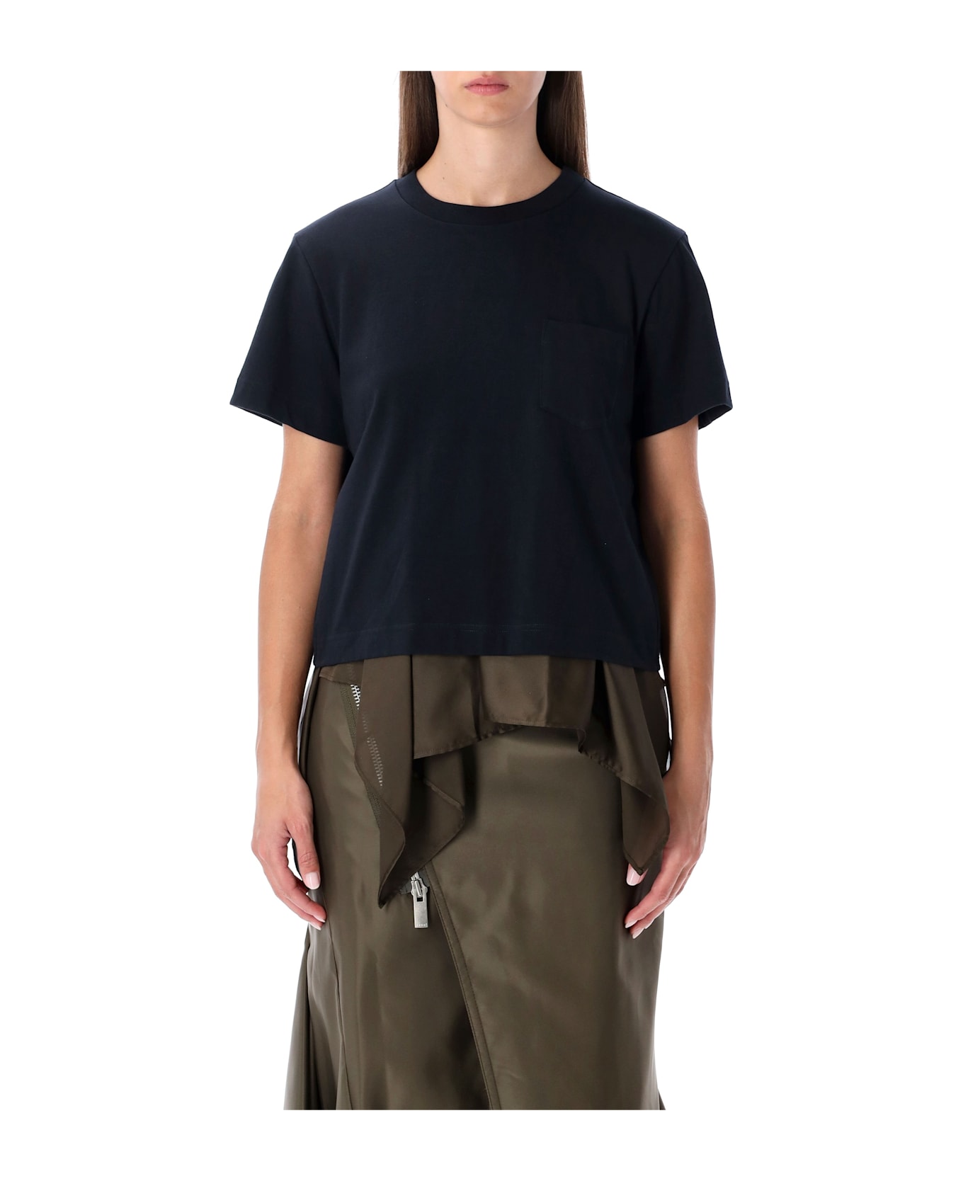 This Sacai T-shirt Redefines A Casual Staple With A Sophisticated Twist. Crafted From Soft Cotton, It Features A Classic Crew Neck And Chest Pocket At The Front, While The Back Reveals A Flowing Voile Insert That Adds Texture And Movement. A Versatile Piece That Combines Minimal Design With A Contemporary Layering Effect. Cotton Jersey Front With Chest Pocket Contrasting Voile Back Panel Crew Neckline And Short Sleeves Asymmetrical Hem With Fluid Drape Relaxed Fit Alessandra Is 1,75 M And Wears Size 2