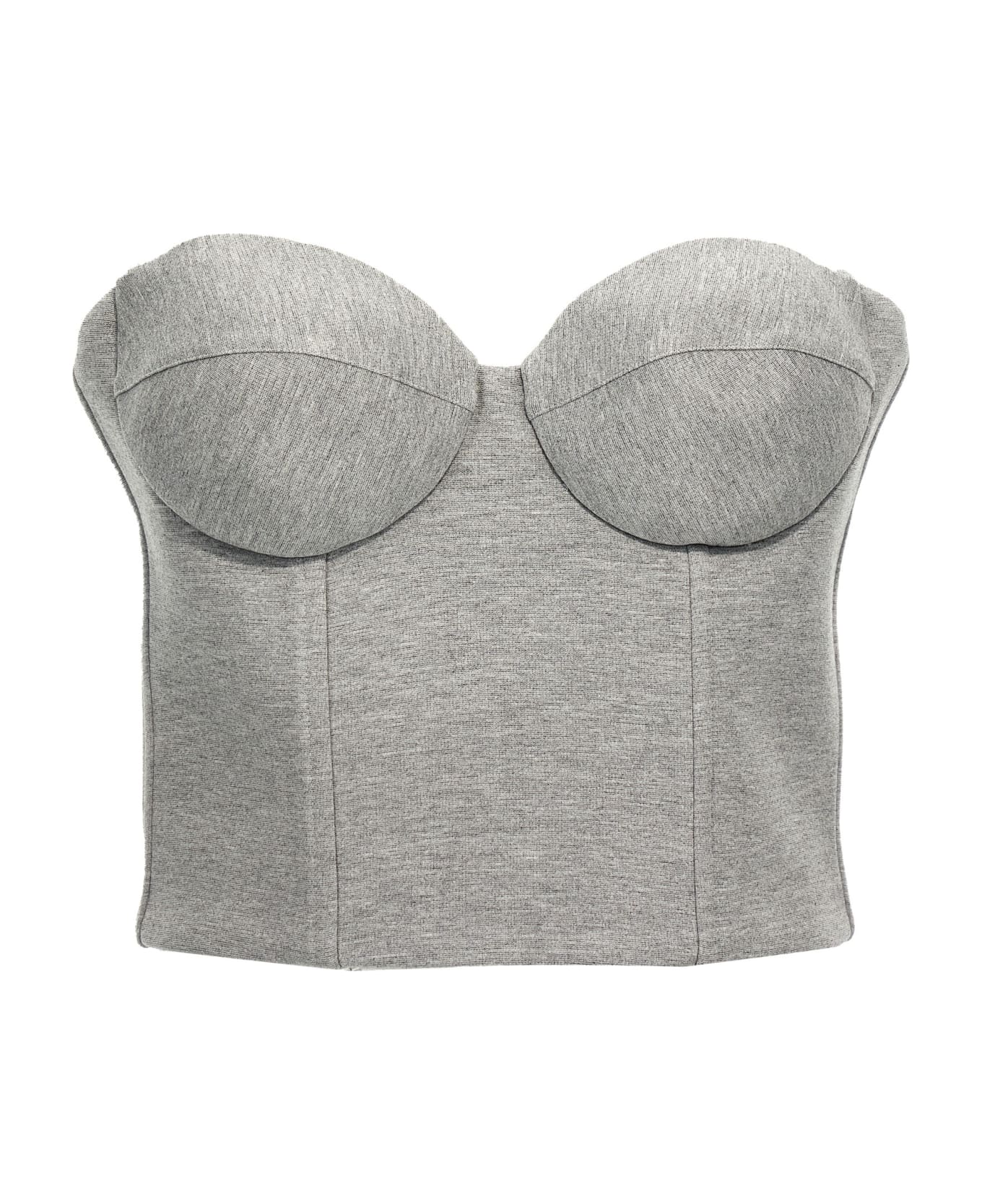 Viscose blend cropped bustier top with sweetheart neckline, underwire cups, and back hook closure.