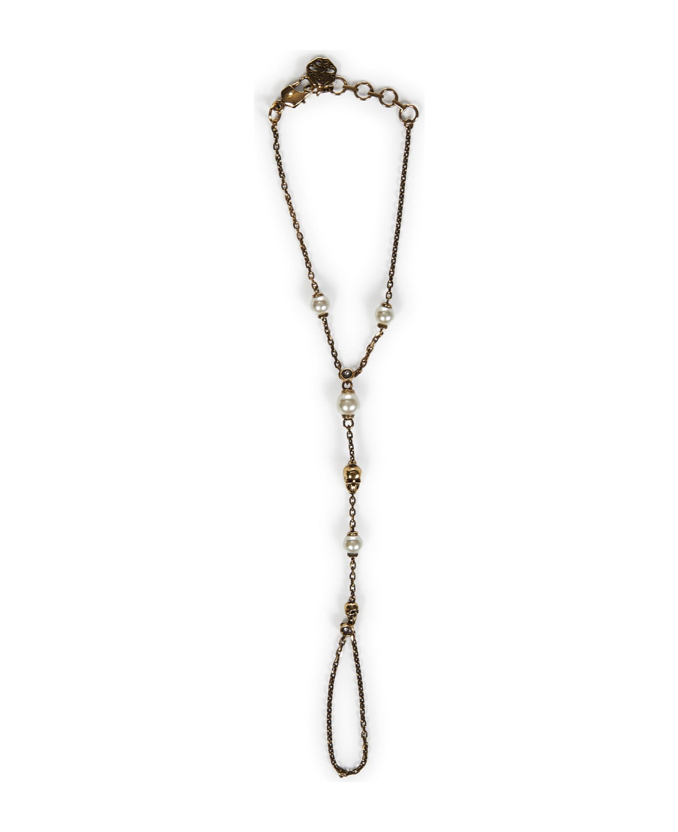 Antique-gold brass chain link design with antique-gold brass Skulls, crystals and white pearl-effect Swarovski