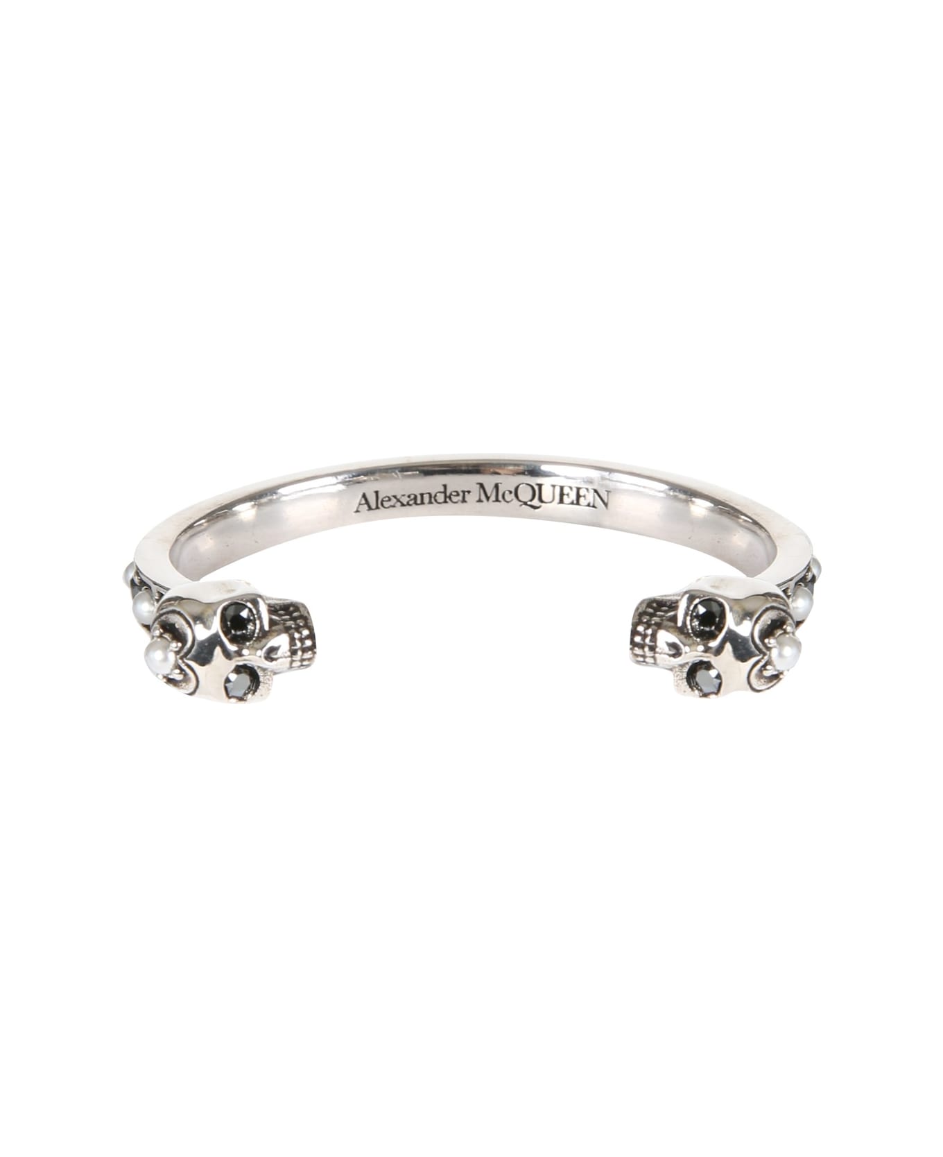 - Double Skull- Pearls And Crystals Set- Logo Engraved Inside- Antiqued Silver Finish Metal- 100% Brass- Made In Italy